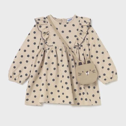 Abito MAYORAL a pois con borsetta , con polsini elasticizzati . Chiusura con clips sul retro.