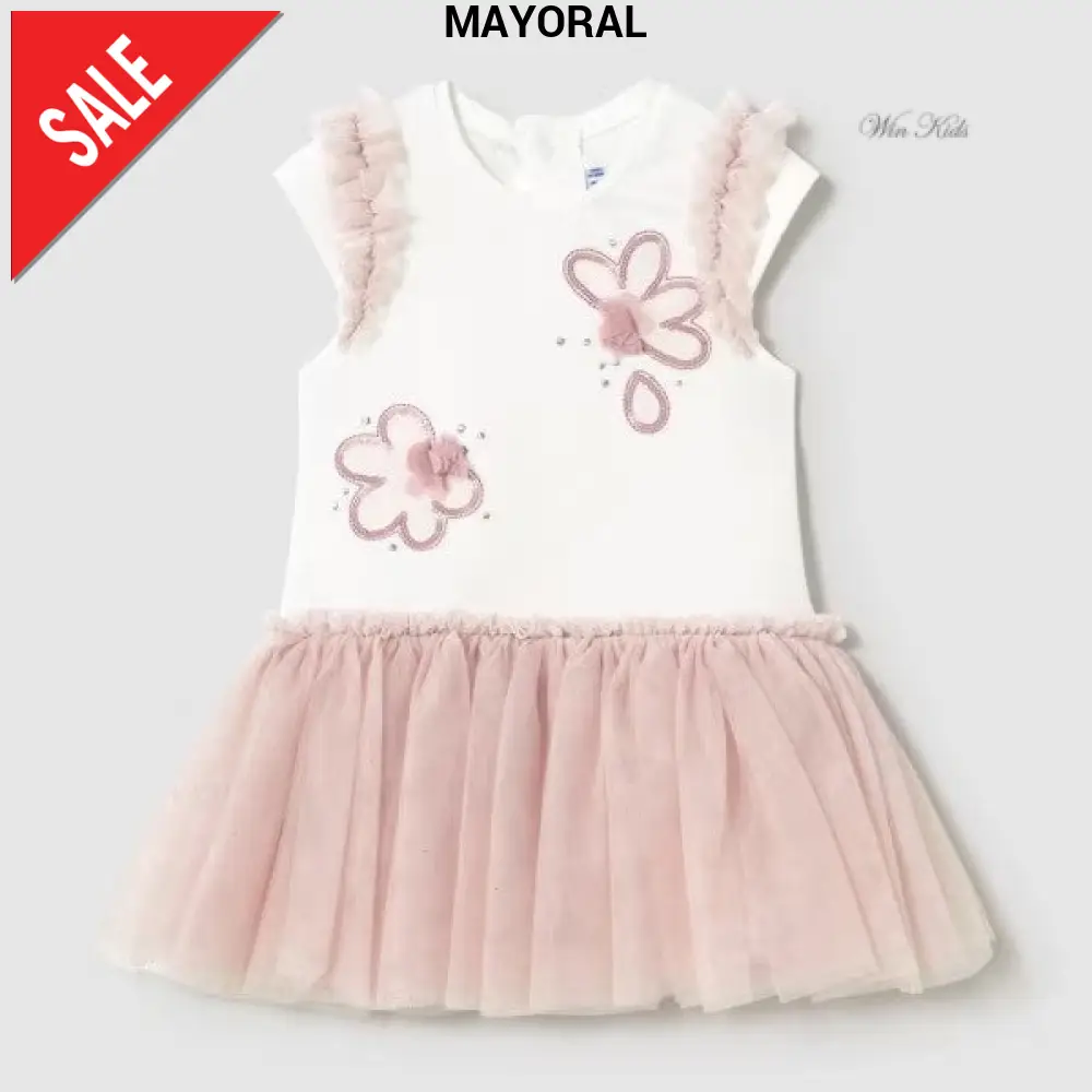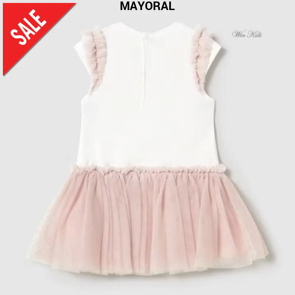 Abito MAYORAL con parte superiore in cotone con ricami , parte inferiore in tulle glitterato.