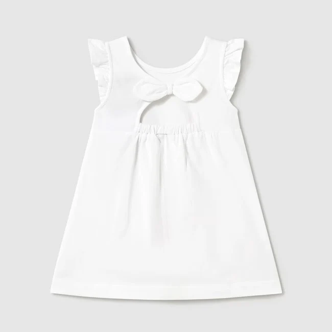 Abito MAYORAL in cotone , con scollatura sul retro , stampe e applicazioni a rilievo.