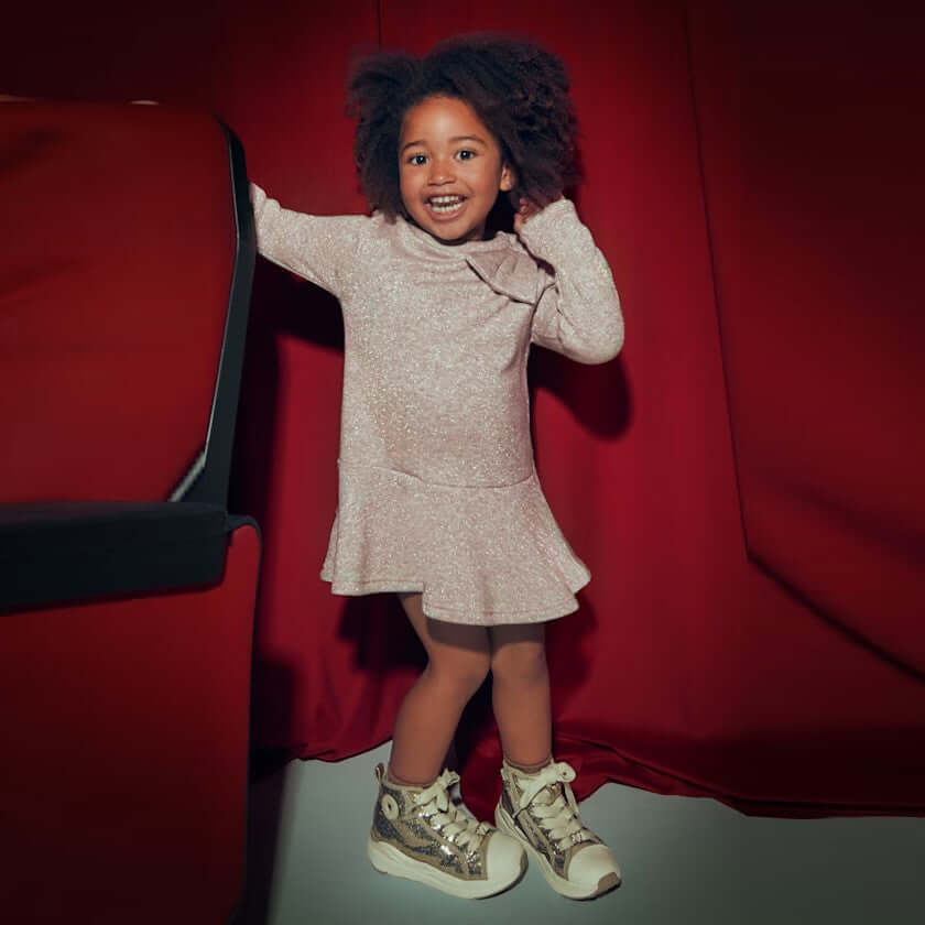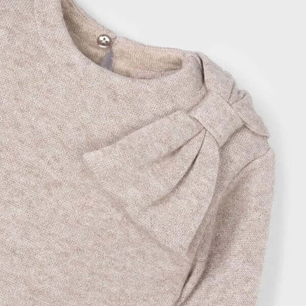 Abito MAYORAL in tricot laminato rosa con fiocco.