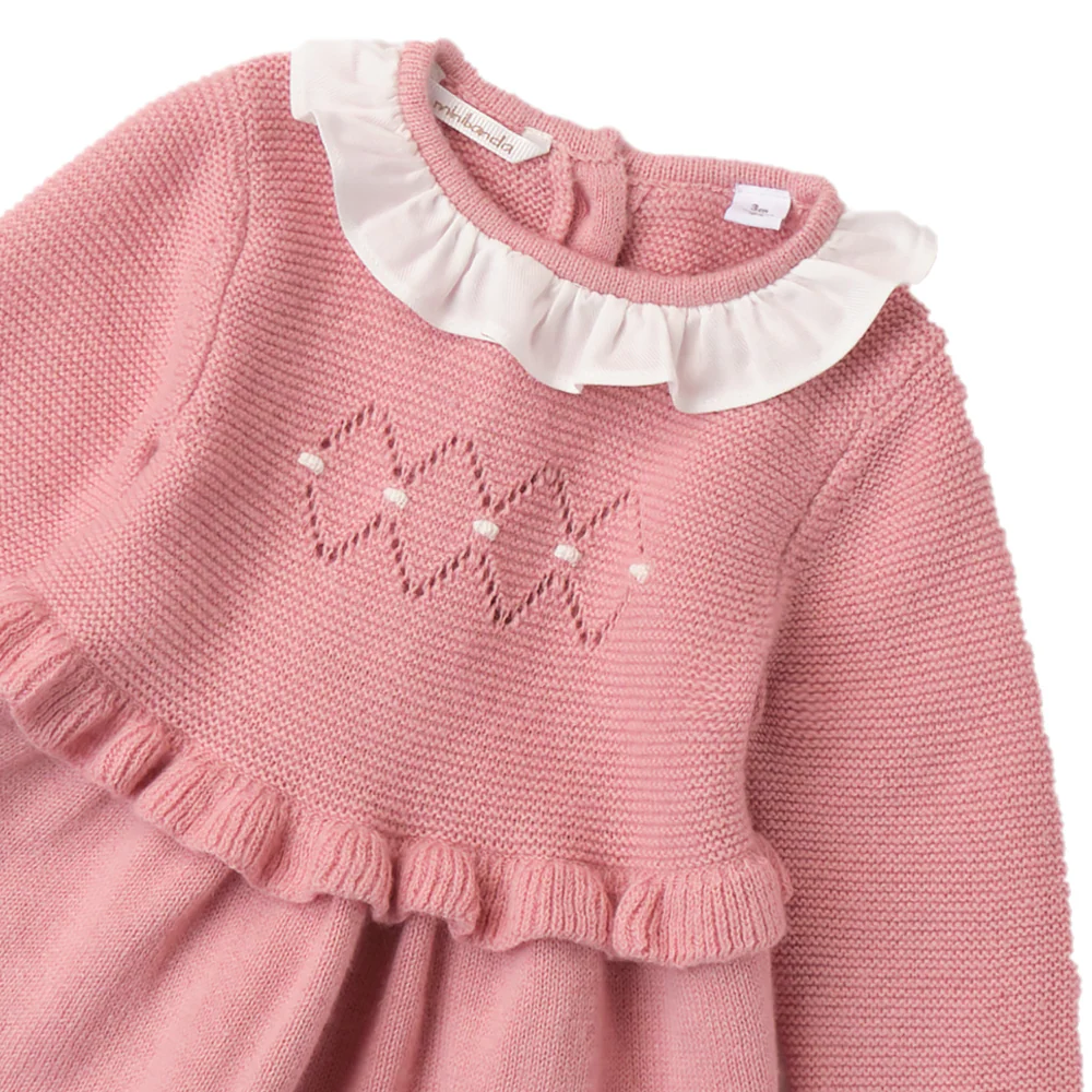 Abito MINIBANDA manica lunga, apertura con bottoncini sul retro. rifiniture a contrasto.