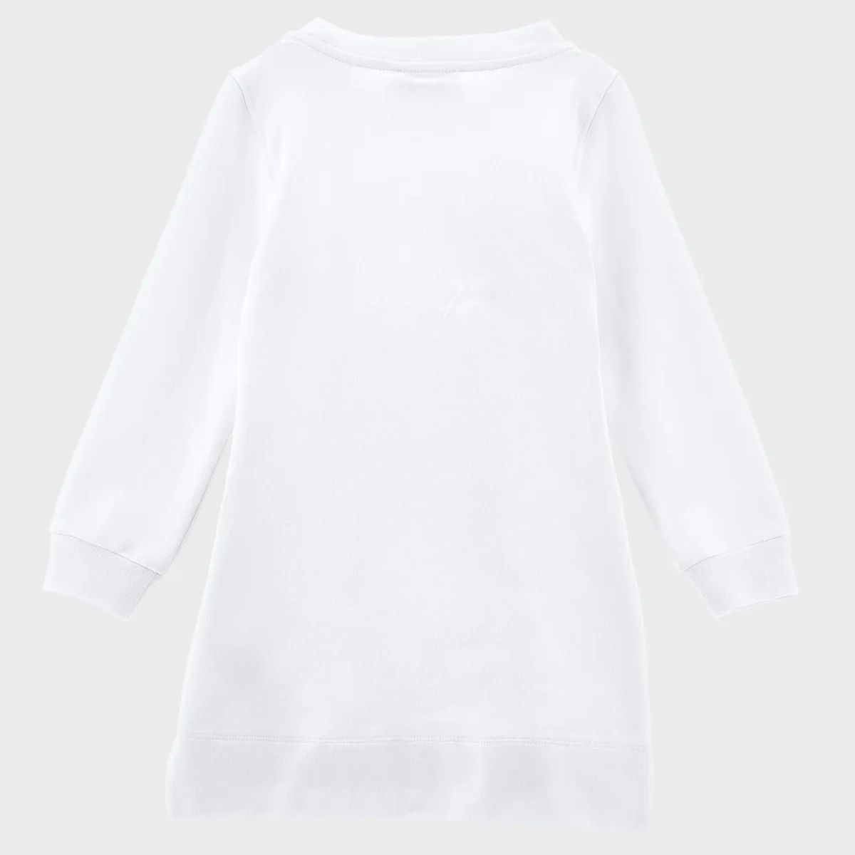 Abito Monnalisa con interno garzato in cotone ,modello girocollo con stampa logata a fantasia Bambi , spacchetti laterali ,modello asimmetrico con retro piu’ lungo ,polsini elastici.