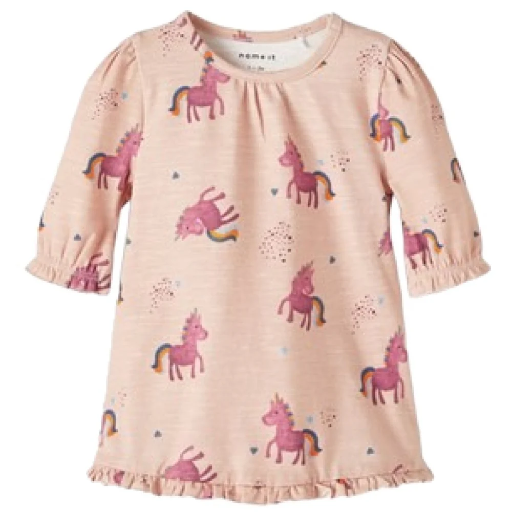 Abito NAME IT in cotone con stampa unicorni elastico ai polsini chiusura clips su spalla.