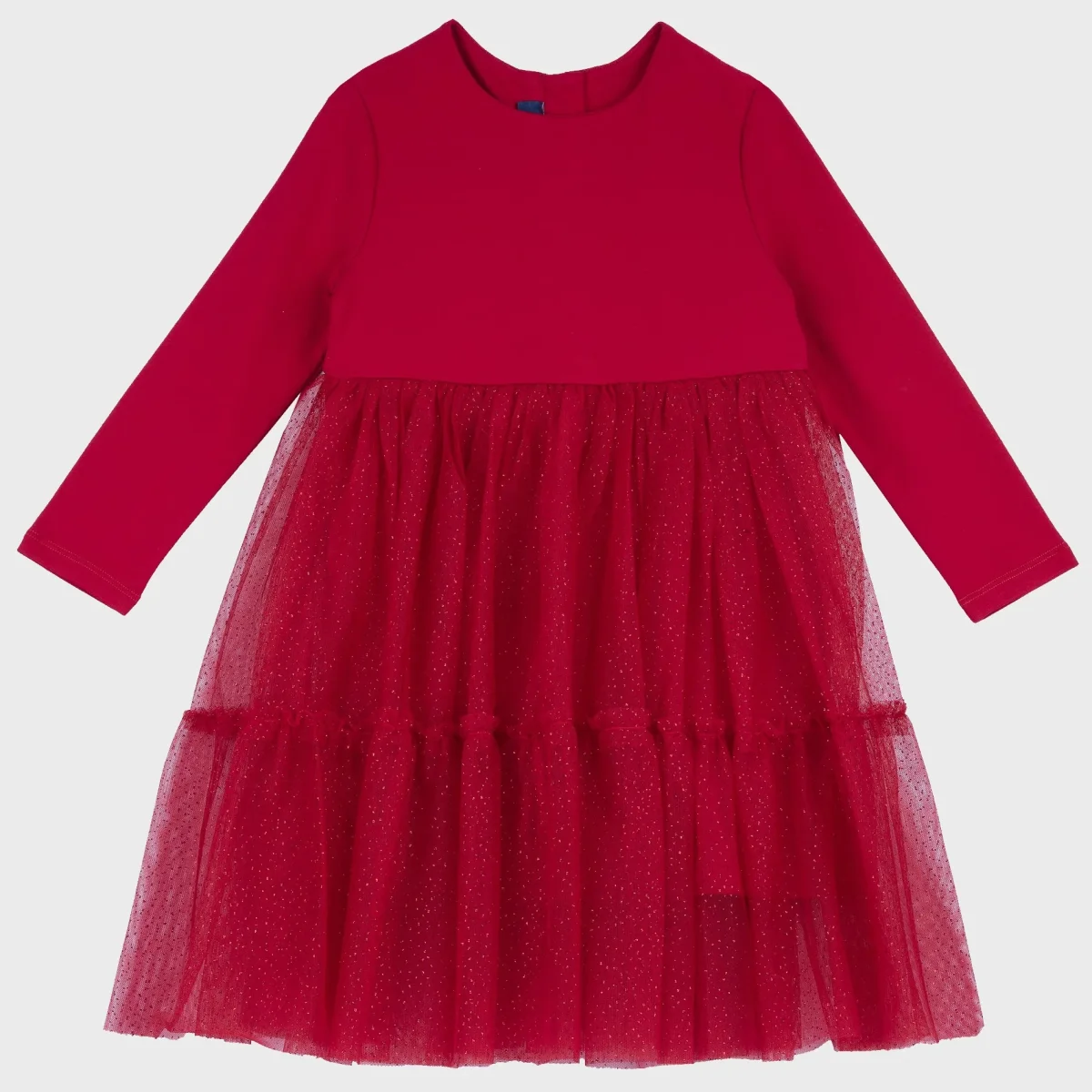 Abito CHICCO in caldo cotone e tulle glitterato con chiusura zip sul retro.
