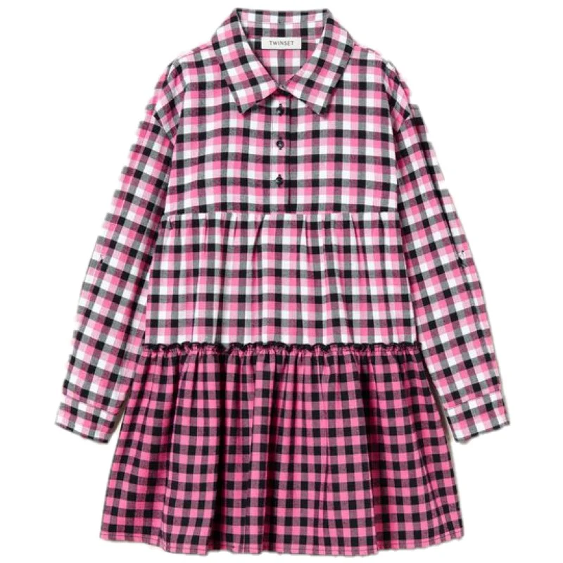 Abito TWINSET in tessuto invernale a fantasia chiusura con bottoni e rifiniture a contrasto.