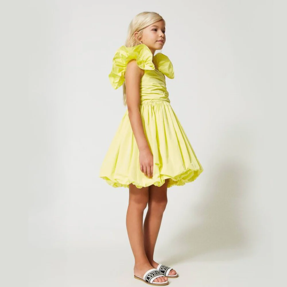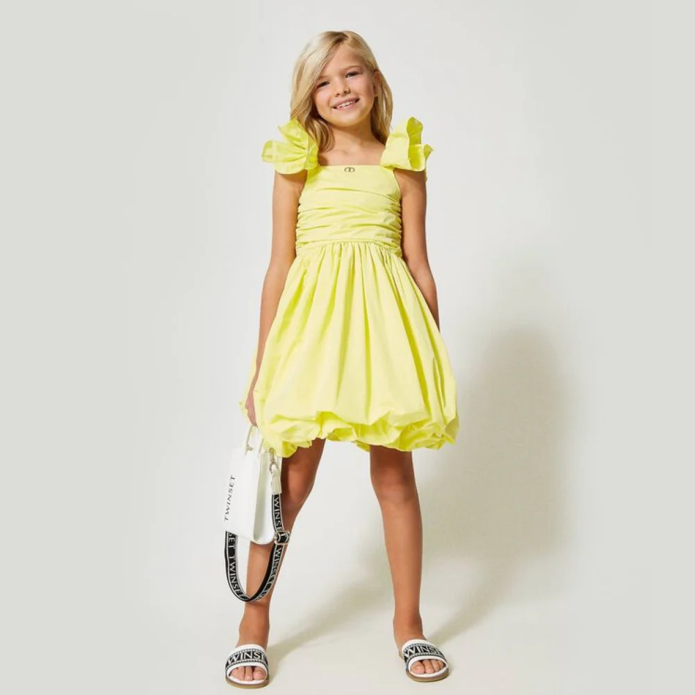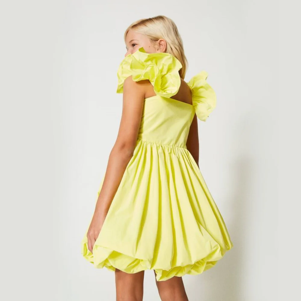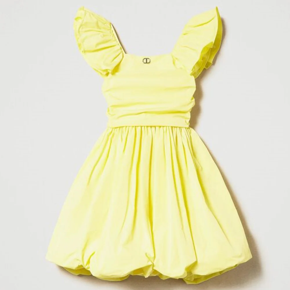 Abito TWINSET in tessuto con gonna a palloncino taglio in vita arricciato spalline con volant chiusura con zip laterale fodera interna in cotone.
