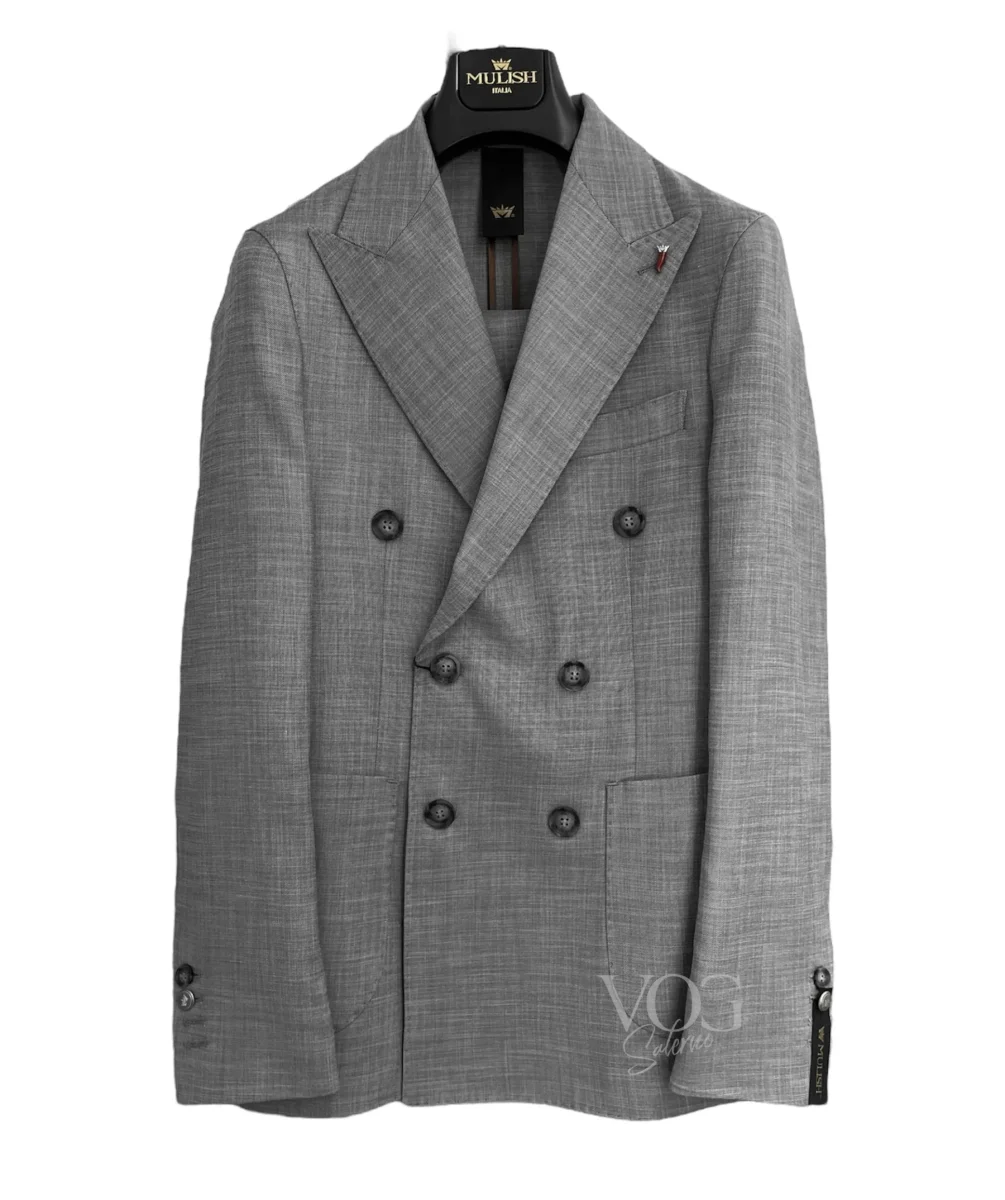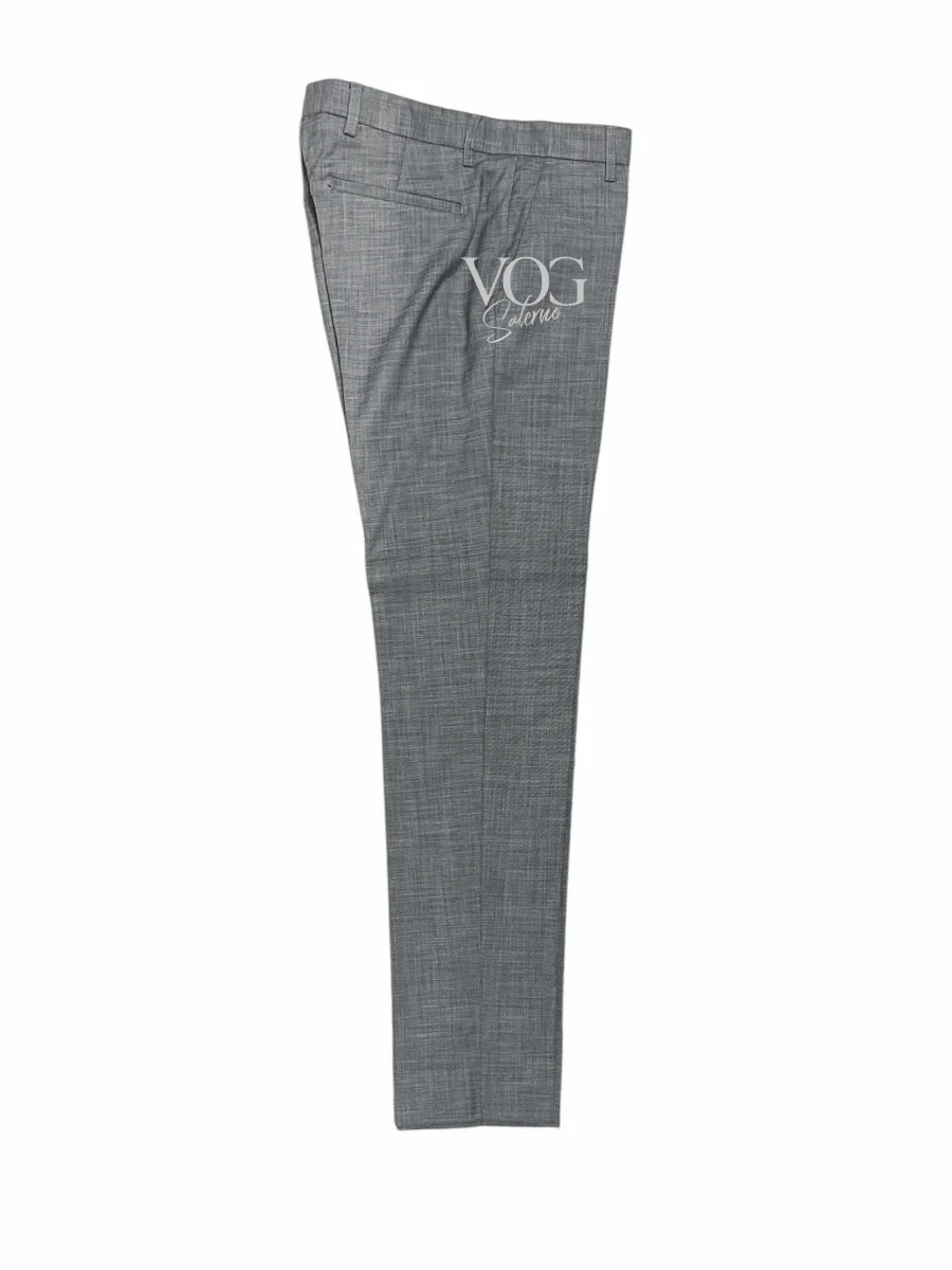 Abito in tessuto leggero misto viscosa colore melange. Collo con revers a lancia, chiusura doppio petto con bottoni screziati in tinta. Tasche applicate laterali e taschino sul petto. Capo non foderato, riprese interne rivestite in fettuccia rasata colore a contrasto. Pantalone slim fit. Vita regolare, cinturino fisso con passanti, chiusura pattina lunga con bottone e gancio interno e zip, tasche a filo laterali. Gamba e fondo stretti. Vestibilità slim. Composizione tessuto 82% poliestere 17% viscosa 1% elastan.