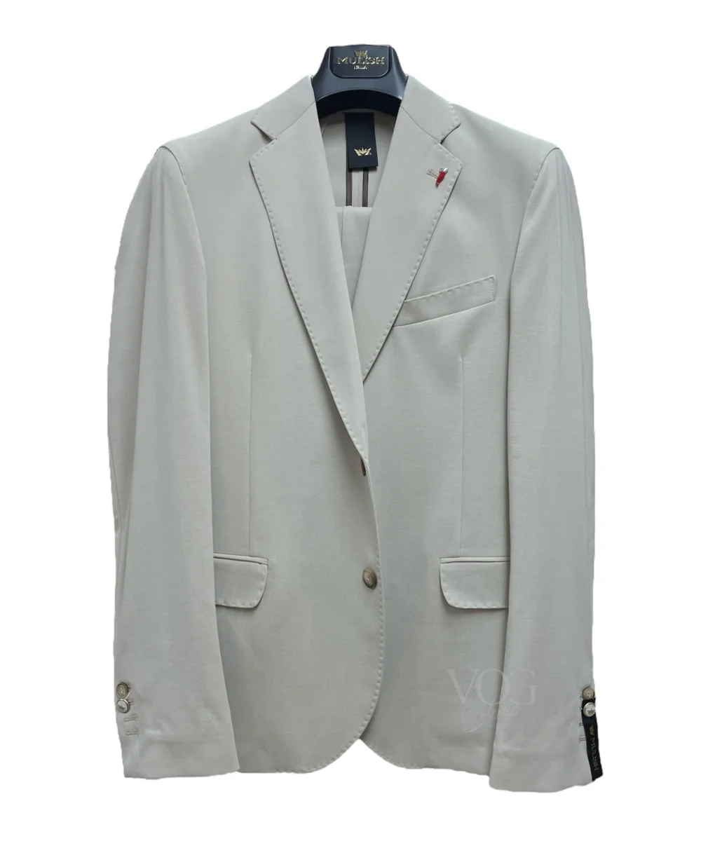 Abito basico in tessuto misto viscosa micro fantasia spigato. Giacca con revers regolari, occhiello con spilla brand. Chiusura centrale classica a due bottoni, tasche laterali con pattina applicata, taschino sul petto. Capo non foderato. Pantalone vita regolare con cinturino fisso con passanti, chiusura con zip, bottone e gancio. Tasche a filo laterali, tasca a filetto posteriore. Gamba e fondo slim stretti. Vestibilità slim. Composizione tessuto 55% viscosa 40% poliammide, 5% elastan.