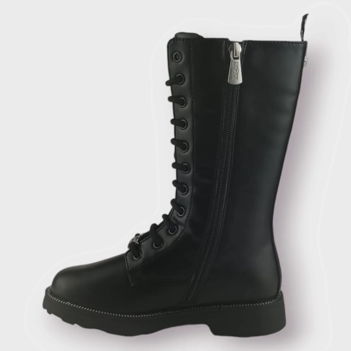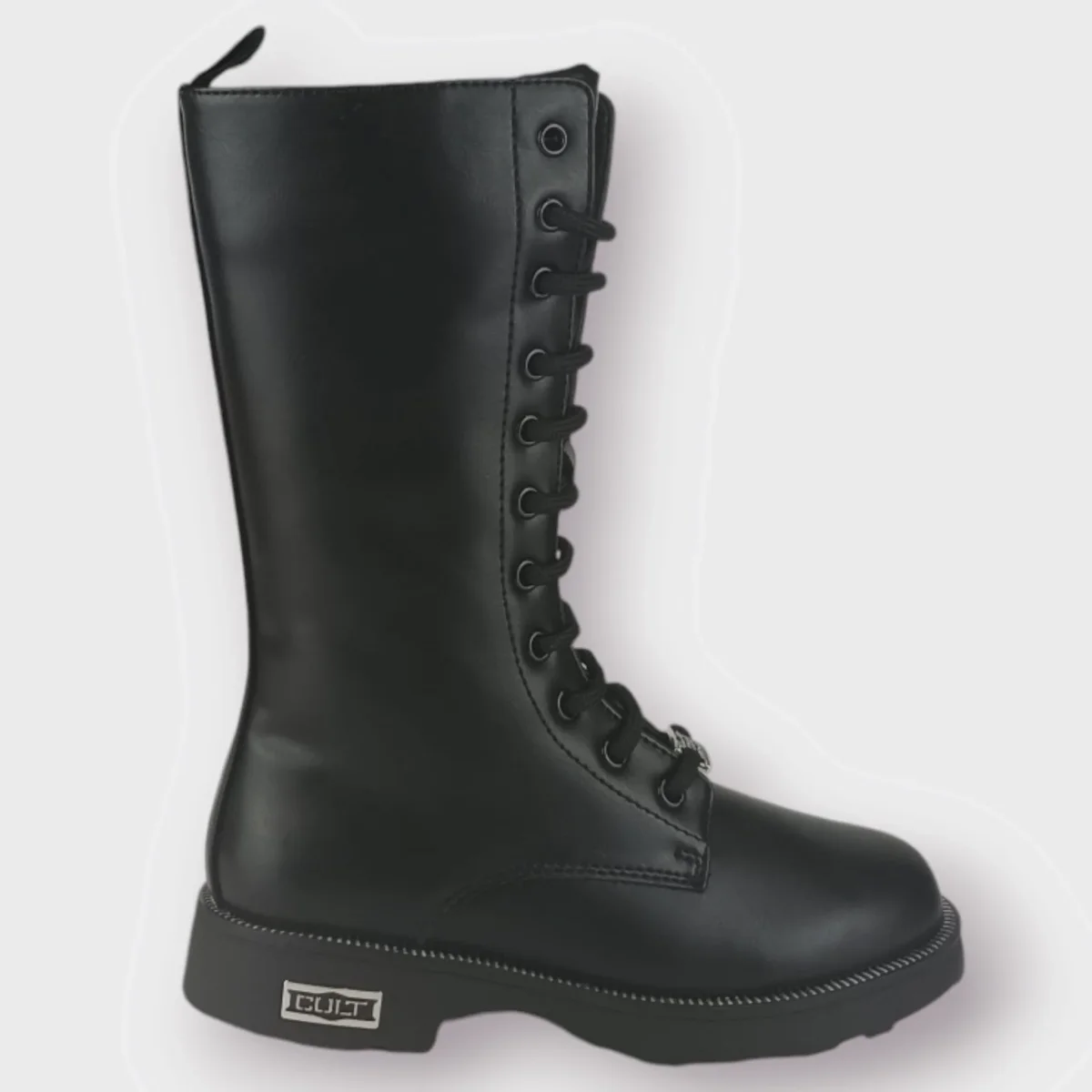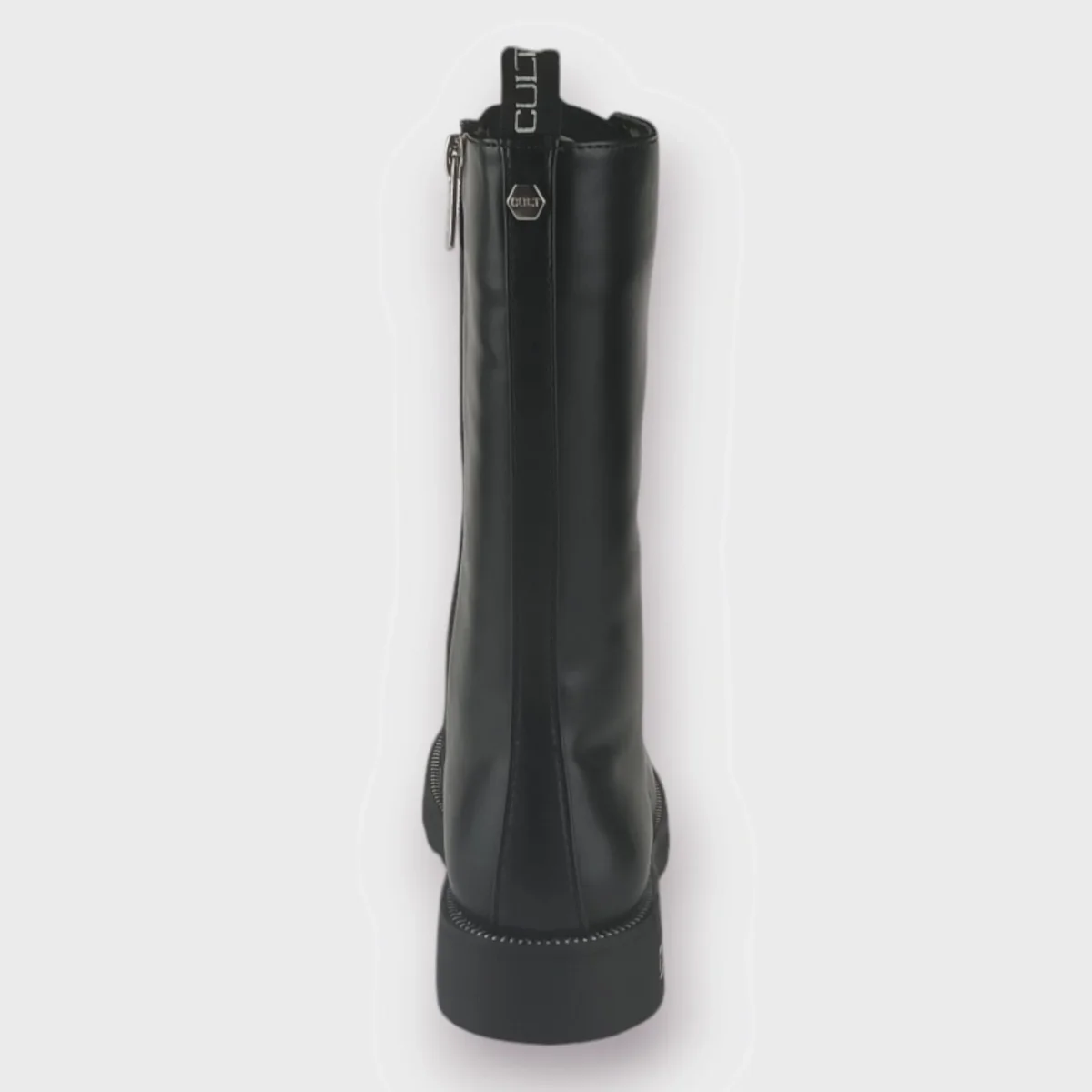 Anfibi CULT in ecopelle, chiusura con lacci e zip laterale ,sottopiede in vera pelle ,fondo in gomma antiscivolo con logo cult.