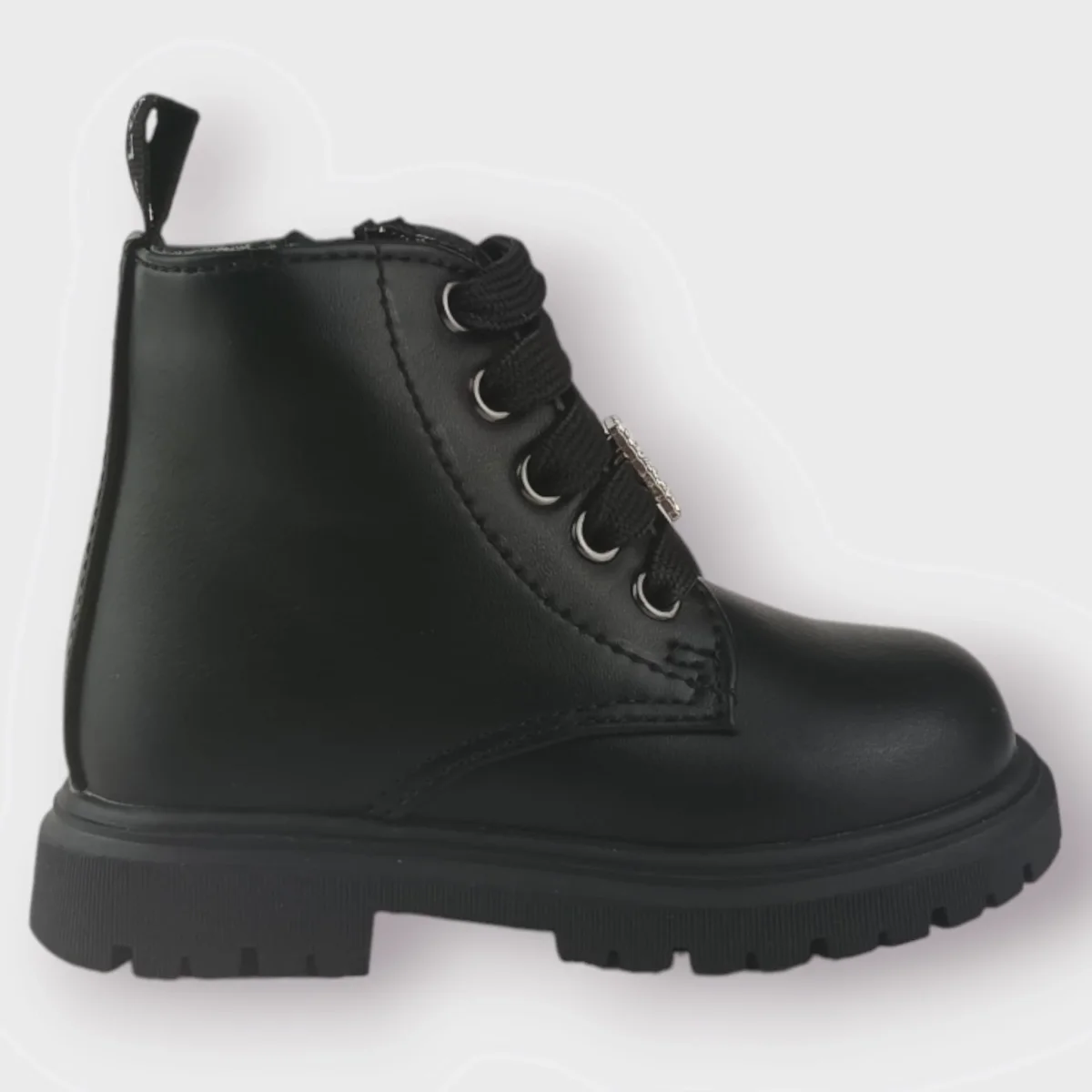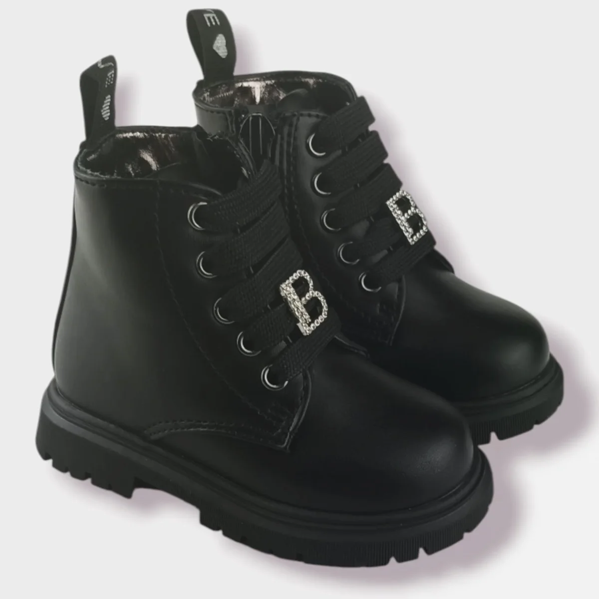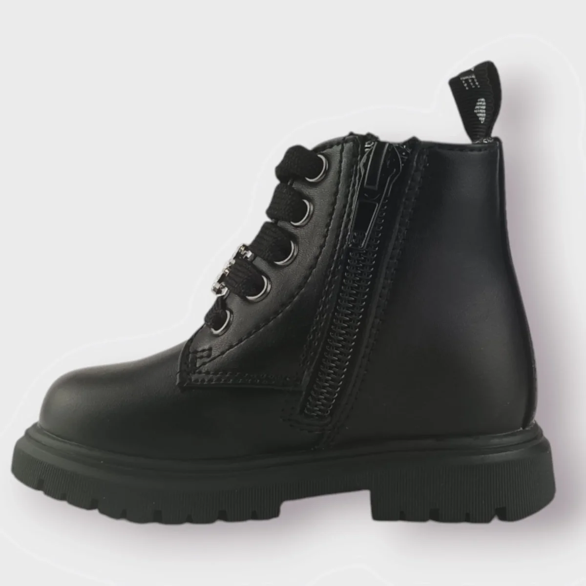 Anfibio LAURA BIAGIOTTI in ecopelle con chiusura lacci e zip laterale ,logo removibile a rilievo con strass applicato sui lacci , fondo leggero in gomma antiscivolo.