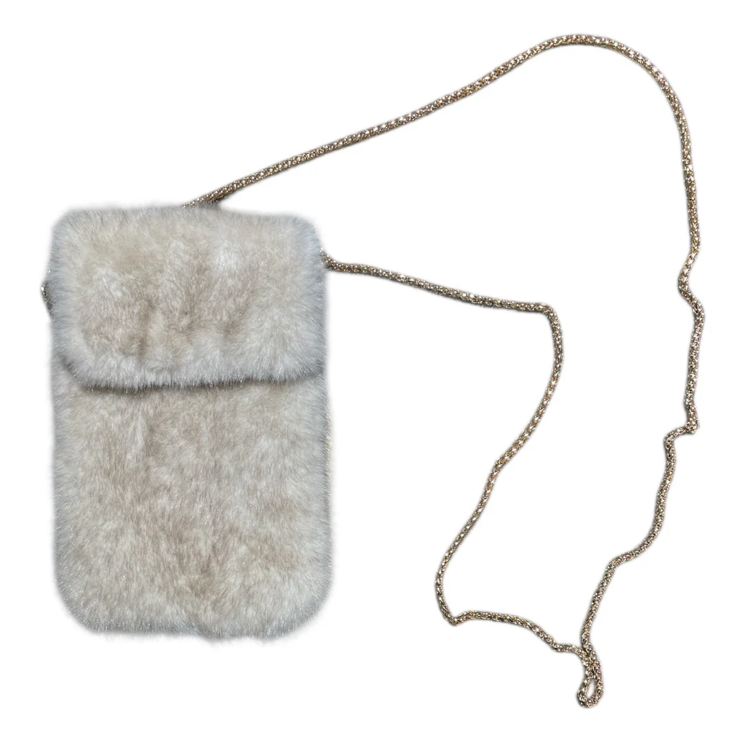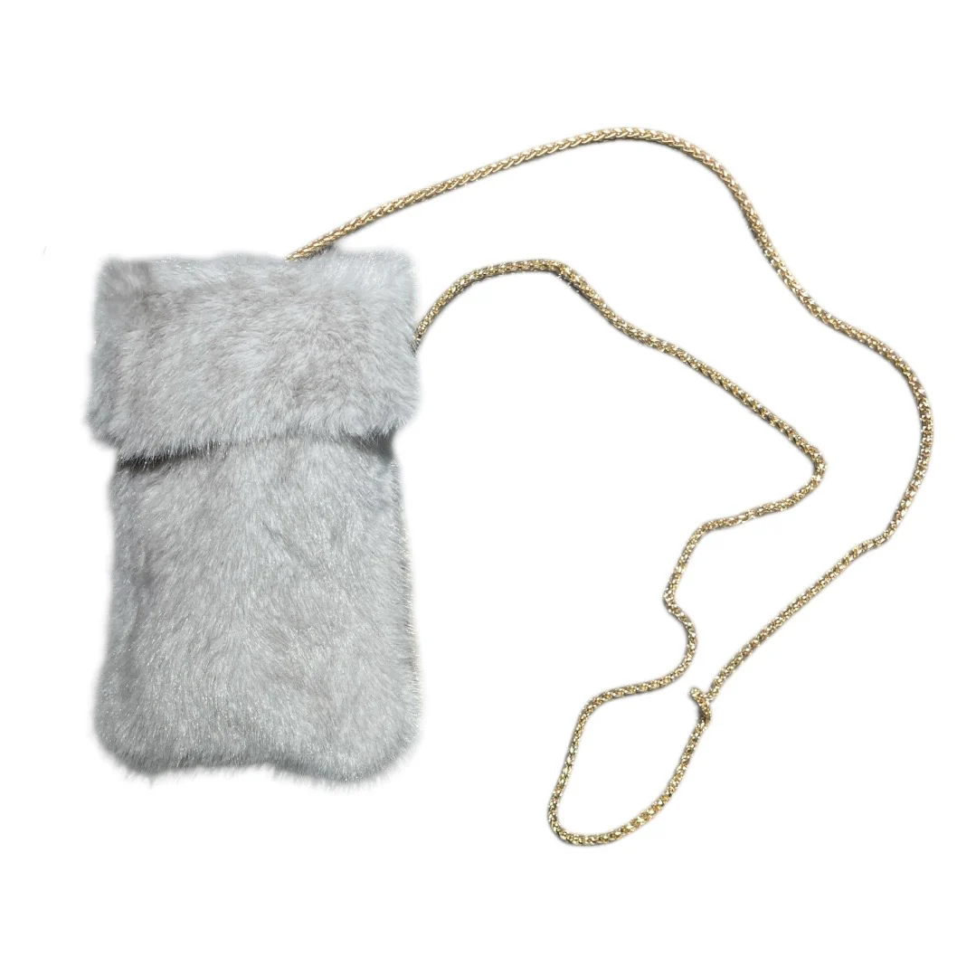 Borsa modello porta cellulare in eco pelliccia. Chiusura con automatico, catenella lunga.