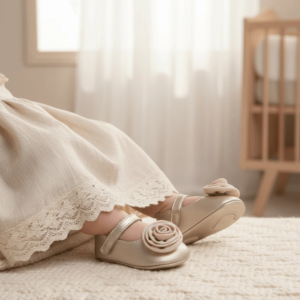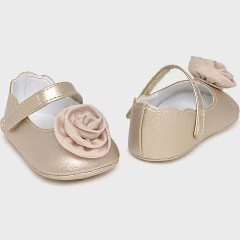 Ballerina MAYORAL oro da neonata con applicazione. Modello da culla. chiusura con velcro.