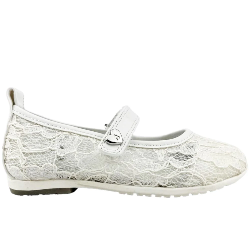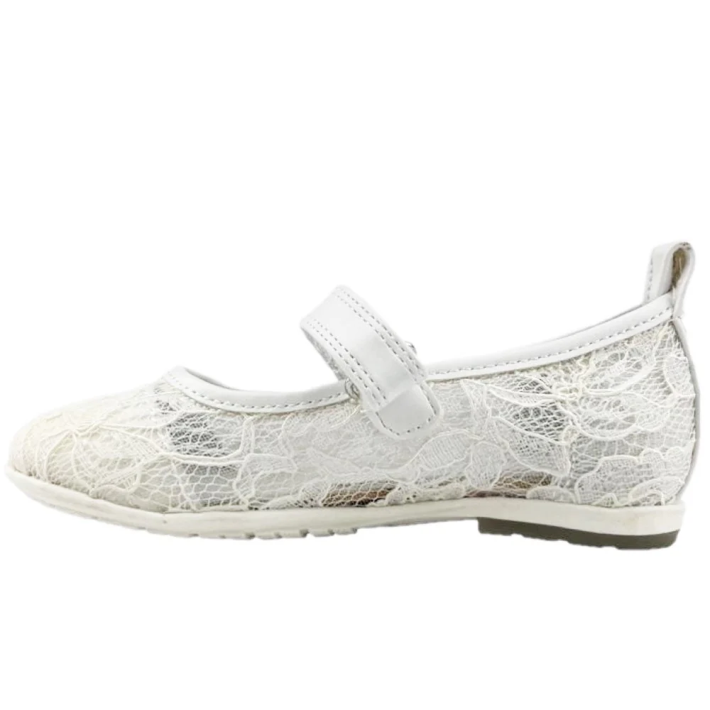 Scarpa ASSO modello ballerina in pizzo con chiusura velcro logato sottopiede in vera pelle fondo in gomma antiscivolo.