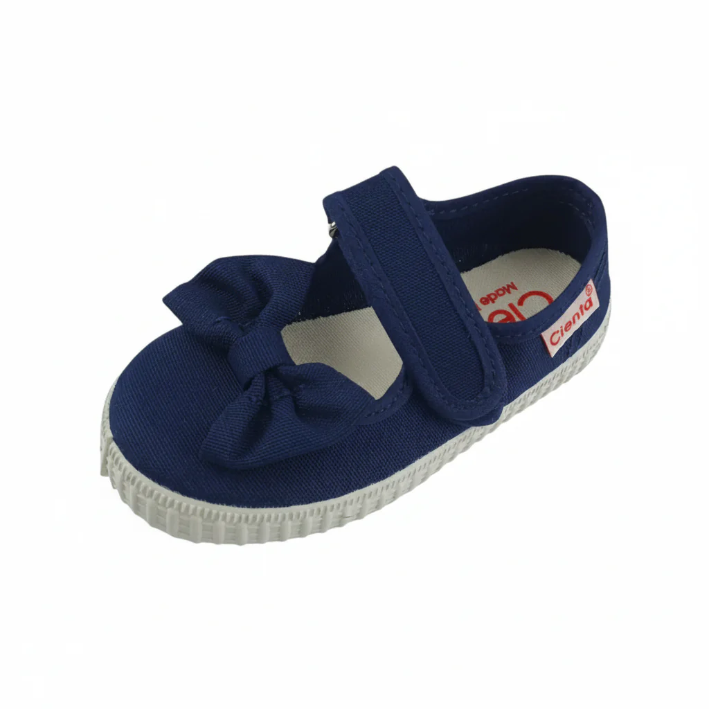 Scarpa CIENTA in tessuto con fiocco applicato chiusura con velcro regolabile fondo in gomma antiscivolo. PROFUMATE MADE IN SPAIN.