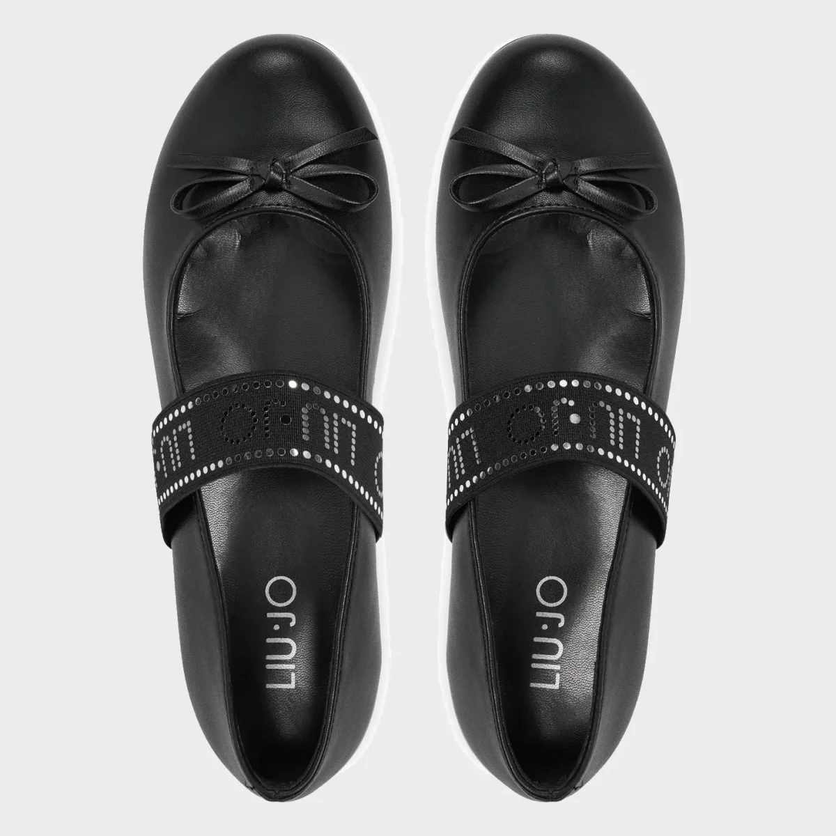 Ballerina LIU JO in ecopelle con elastico logato e fiocchetto alla punta ,fondo leggero in gomma.