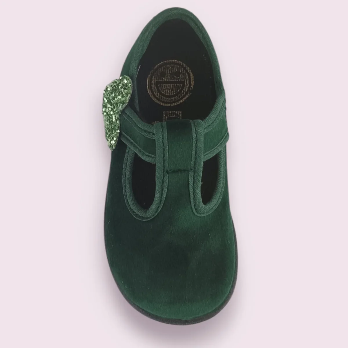 Ballerina SPINDOCTOR linea DXO in velluto ,chiusura velcro con glitter , fondo leggero e flessibile in gomma antiscivolo. MADE IN ITALY
