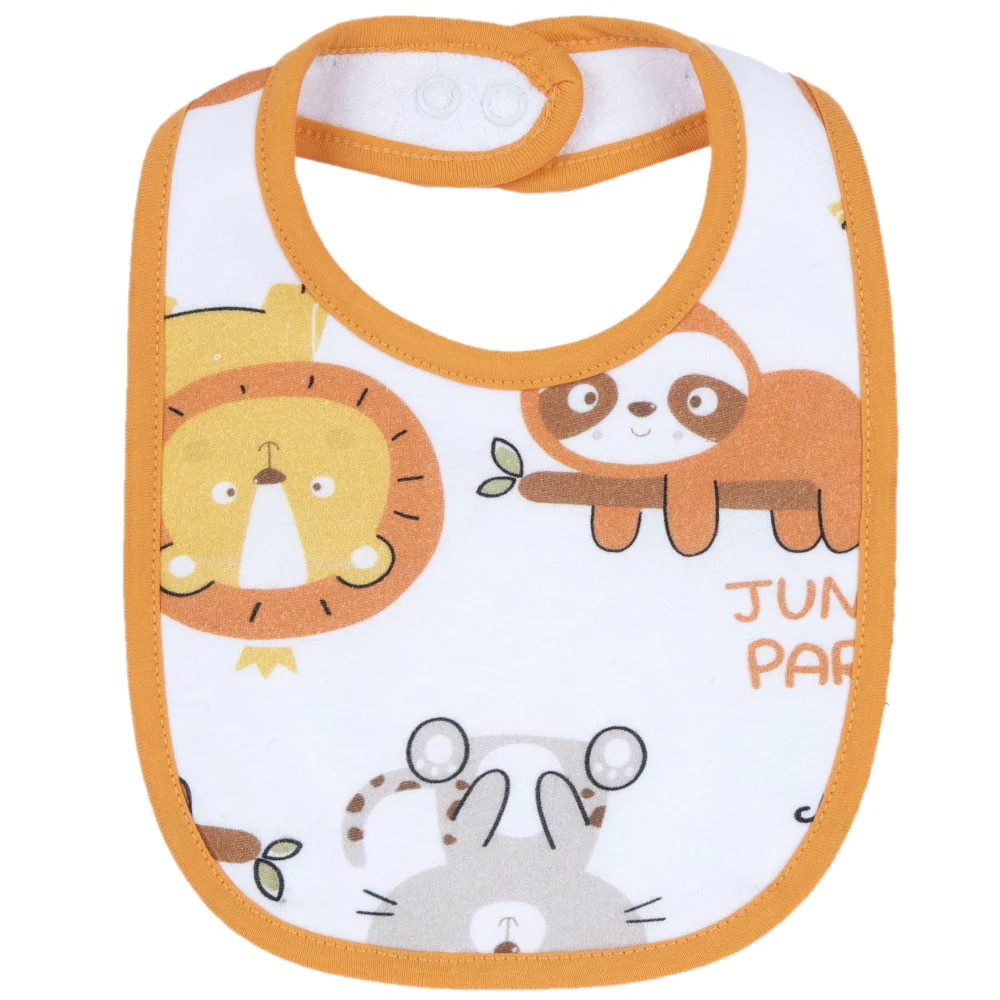 Bavetta CHICCO in cotone a fantasia logata in colori a contrasto retro in spugna chiusura con clips sul retro.