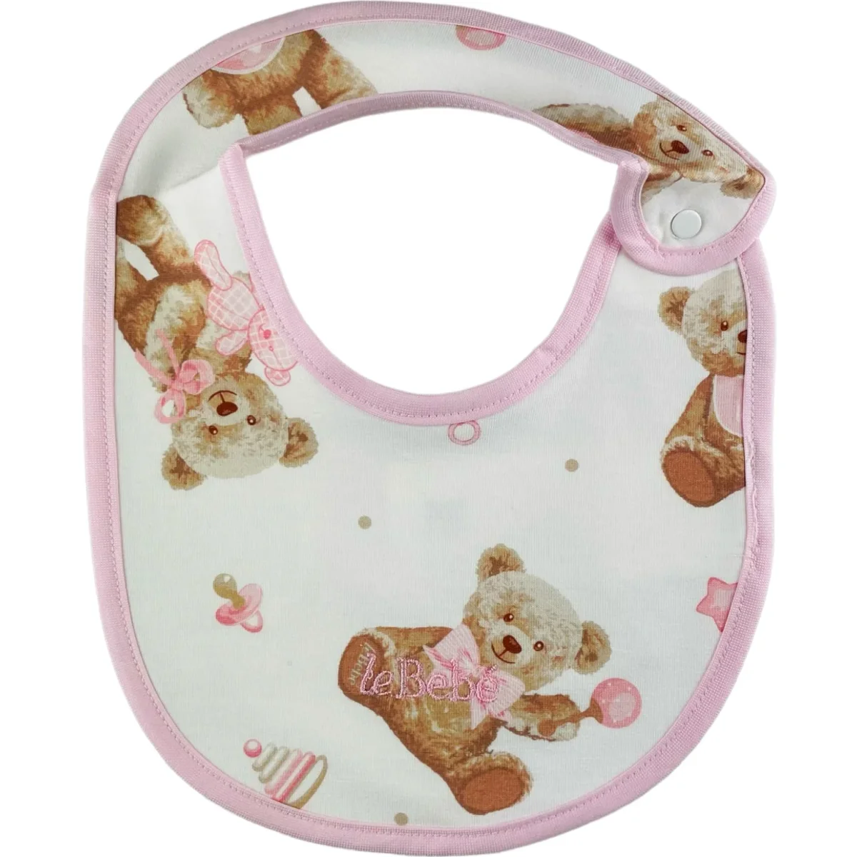 Bavetta LE BEBE’ in cotone a fantasia con bordatura a contrasto e logo ricamato.