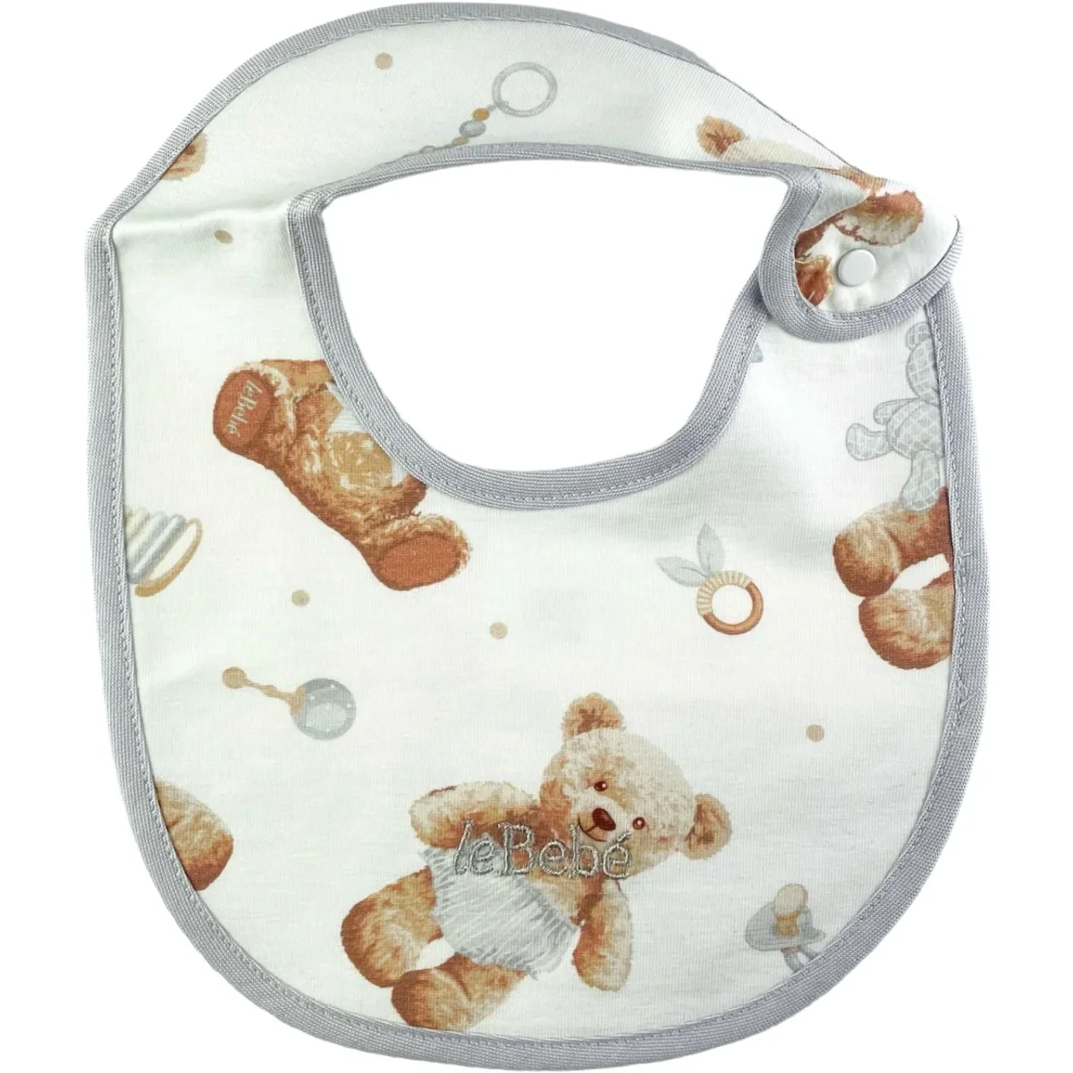 Bavetta LE BEBE’ in cotone a fantasia con bordatura a contrasto e logo ricamato.