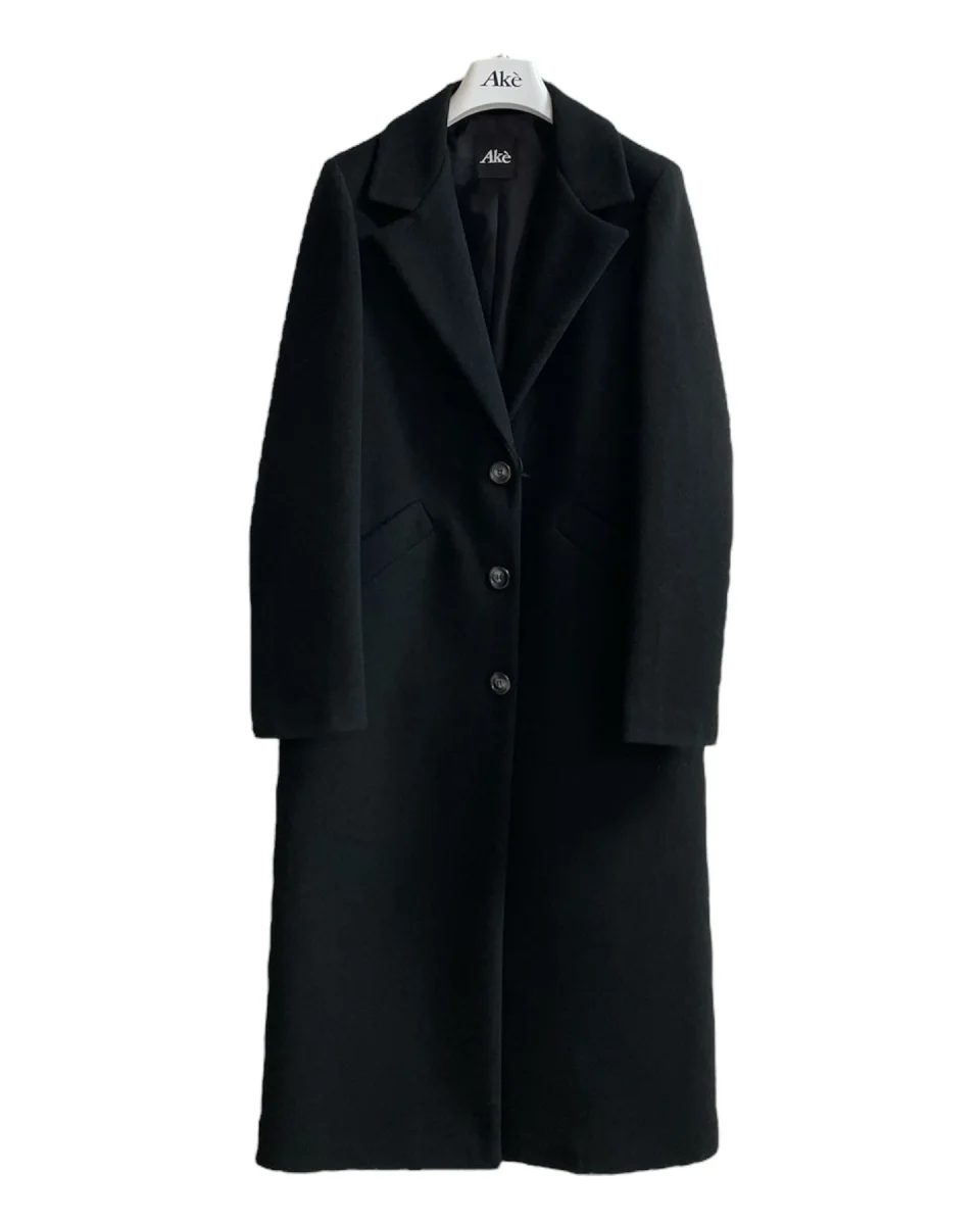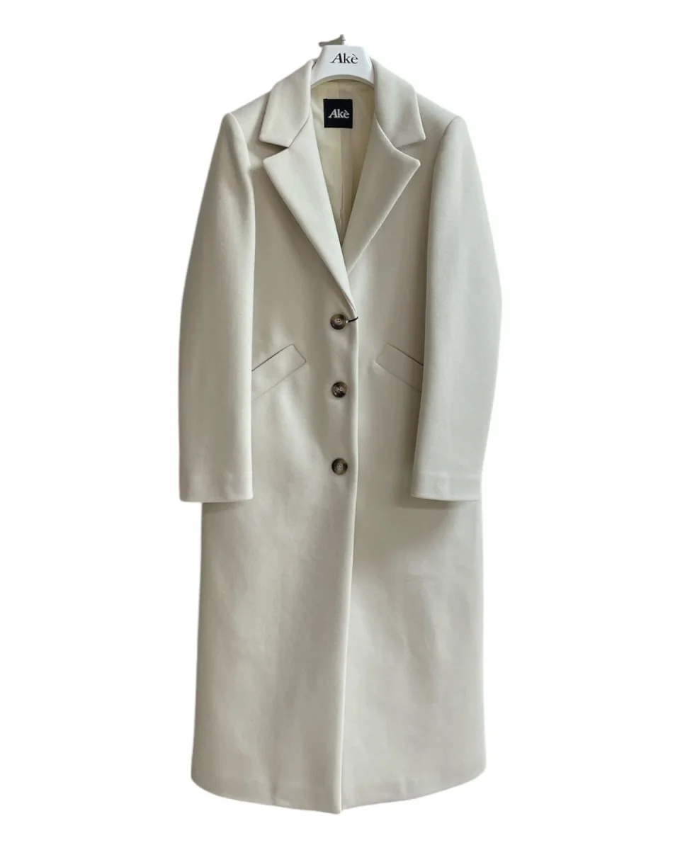 Cappotto lungo in panno, lunghezza al polpaccio. Collo con revers ampi, chiusura a due bottoni. Capo foderato. Vestibilità dritta.
