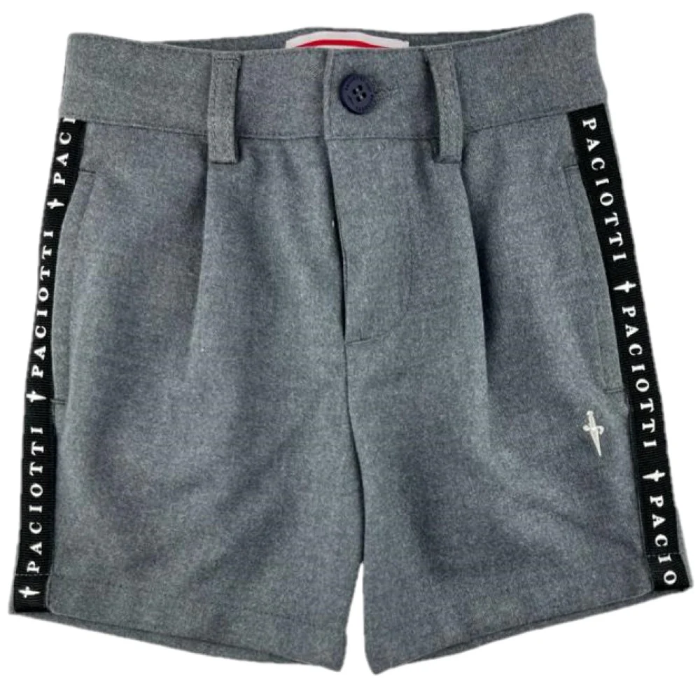 Bermuda CESARE PACIOTTI in tessuto con regoli in vita bande logate laterali spadino ricamato tasche laterali e sul retro chiusura con zip e bottoncino logato.