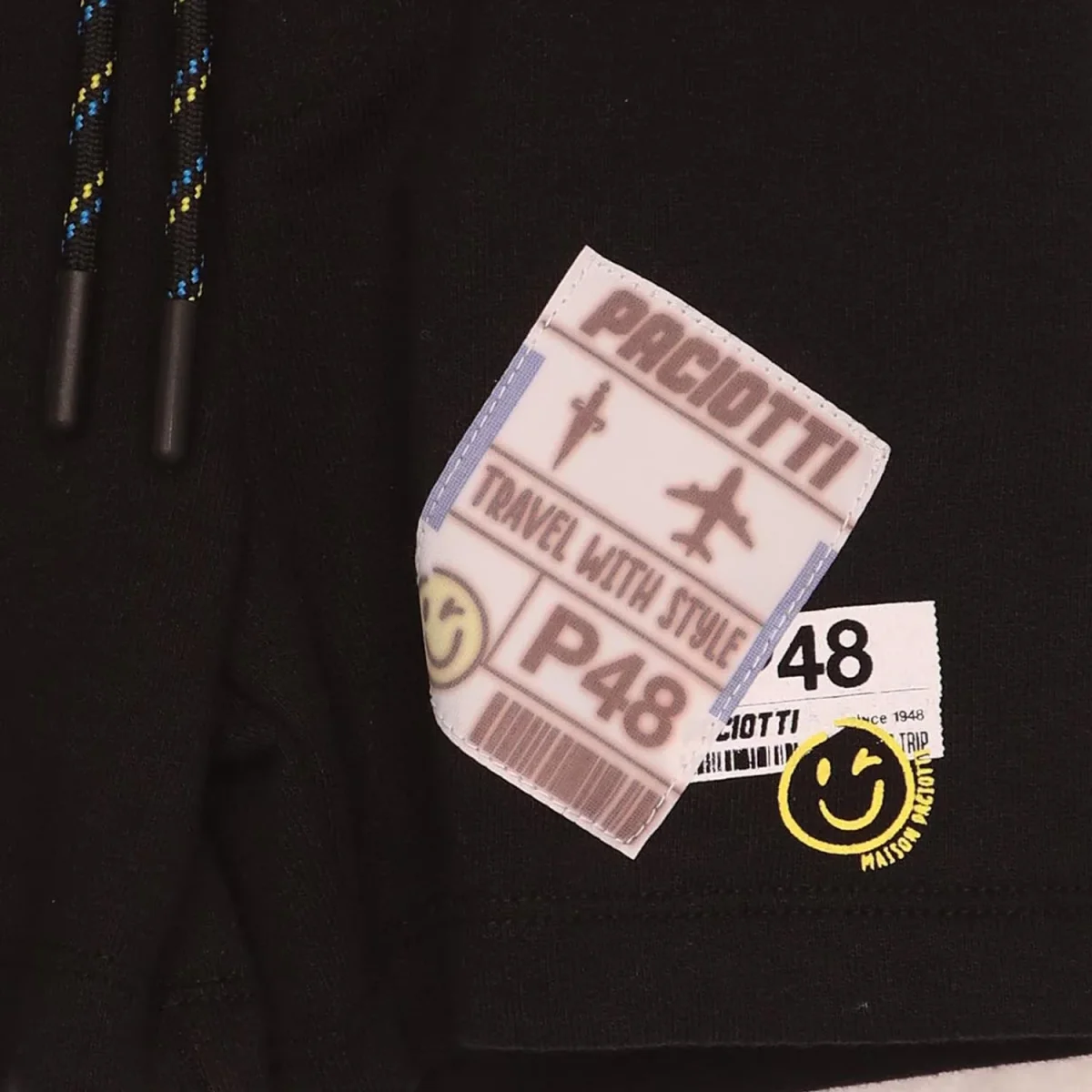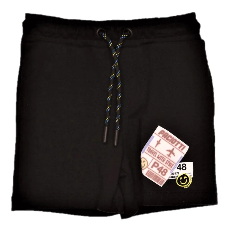 Bermuda CESARE PACIOTTI in cotone garzato con applicazioni e logo laccetto in vita.codice: BFP0125B V1 NERO