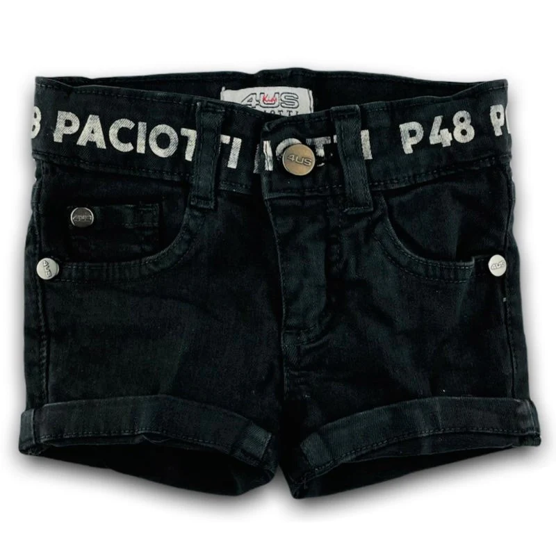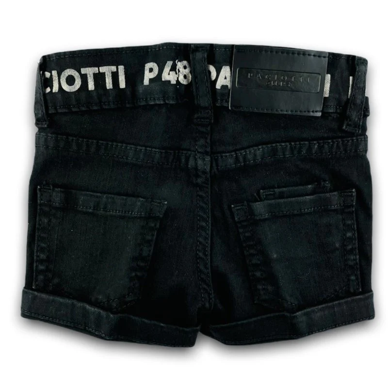 Bermuda CESARE PACIOTTI in jeans con loghi a contrasto. chiusura con bottone logato e zip. regoli in vita.