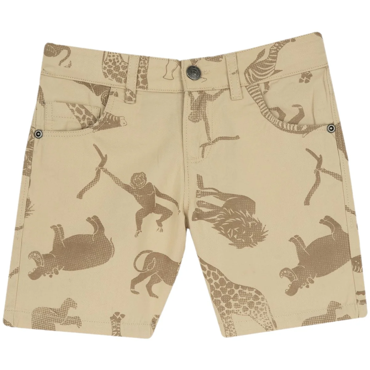Bermuda CHICCO in cotone a fantasia jungle, tasche laterali e sul retro, chiusura con zip e bottone, regoli in vita.
