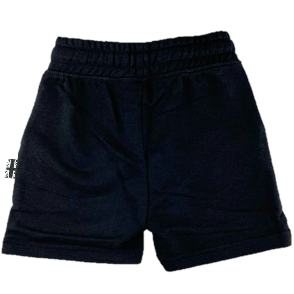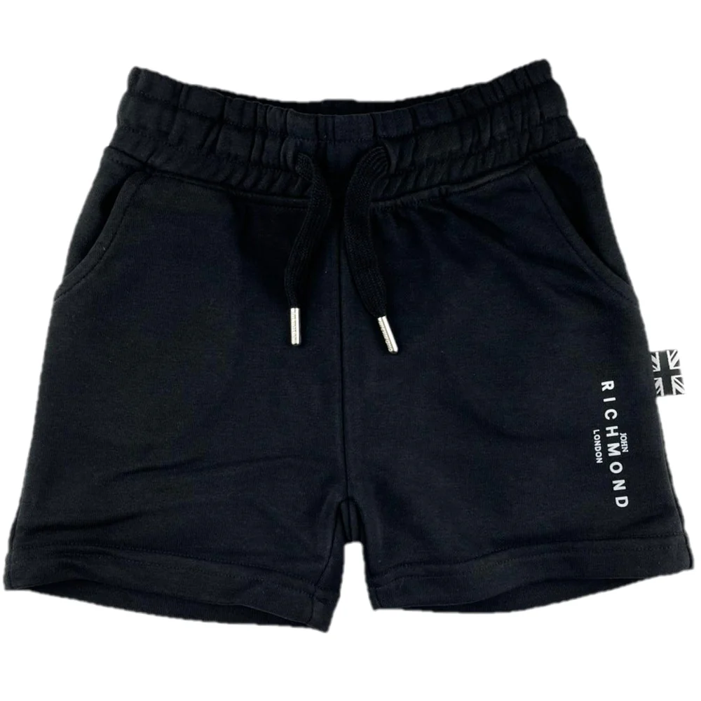 Bermuda JOHN RICHMOND in cotone con interno garzato elastico in vita con laccio logato tasche laterali logo stampato a rilievo e in patch laterale .
