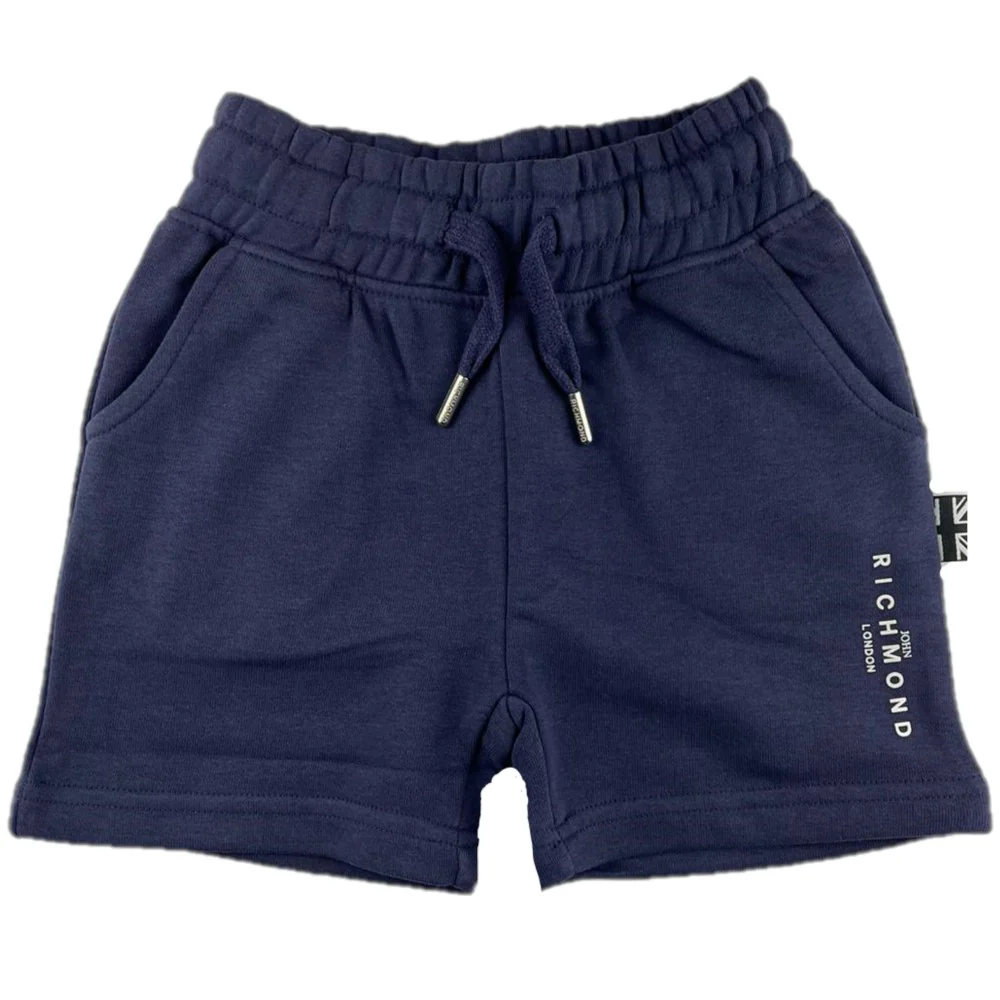 Bermuda JOHN RICHMOND in cotone con interno garzato elastico in vita con laccio logato tasche laterali logo stampato a rilievo e in patch laterale .
