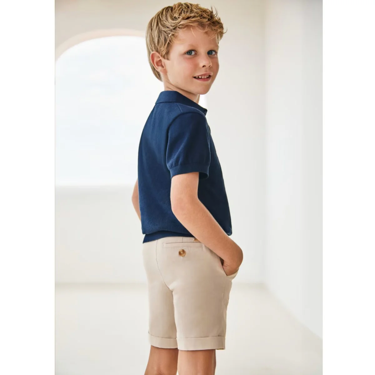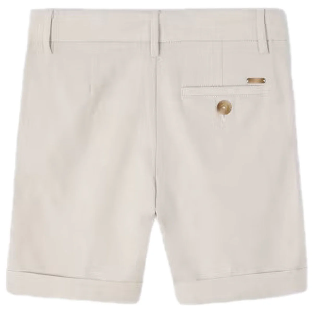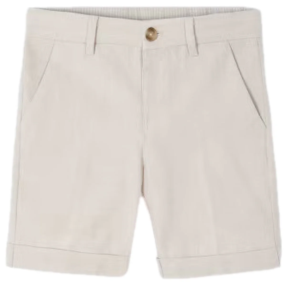 Bermuda MAYORAL in misto lino, tasche laterali, taschino con bottoncino logato sul retro e logo applicato, chiusura con bottone logato, regoli in vita.