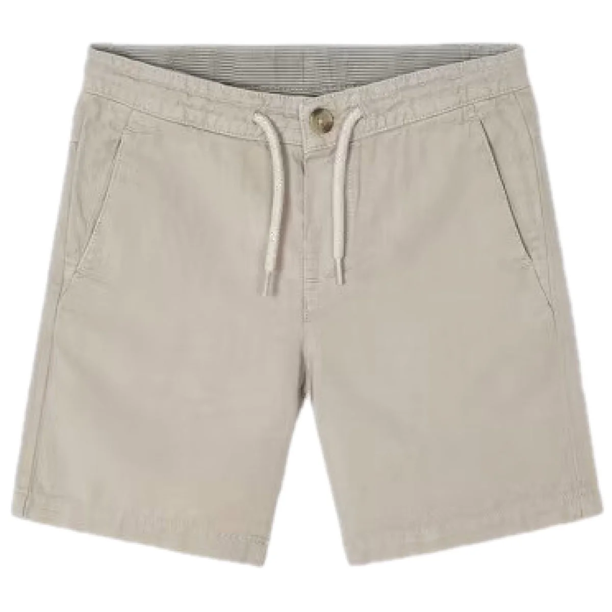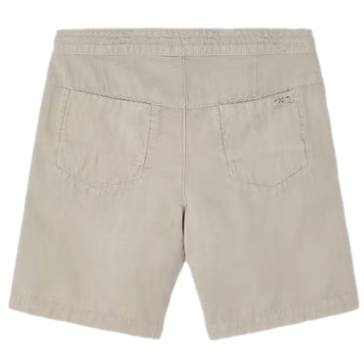 Bermuda MAYORAL in misto lino con tasche laterali e sul retro, chiusura con bottone e laccetto regolabile, regoli in vita, logo applicato sul retro.