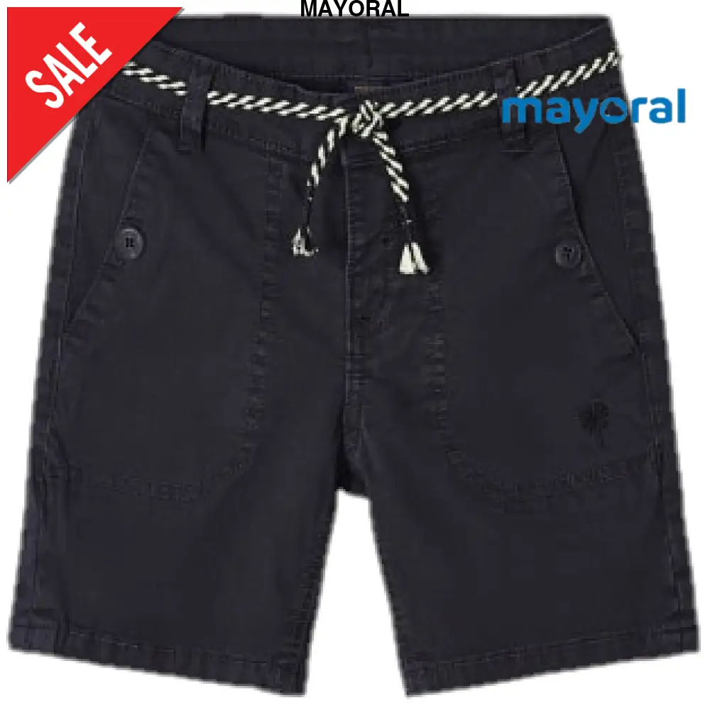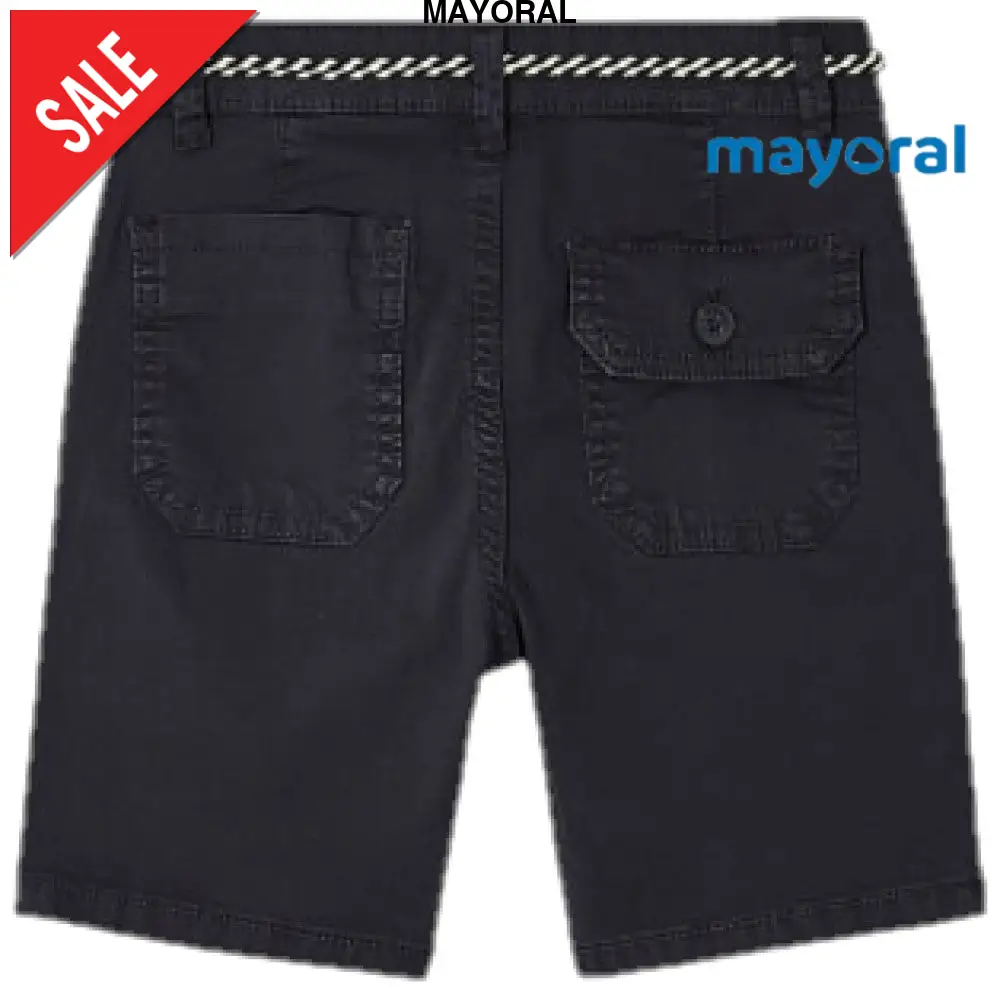 Bermuda MAYORAL in cotone organico con cordoncino coordinato tasche laterali e sul retro chiusura con bottone dalla 6 anni alla 9 anni chiusura con bottone e zip.Composizione