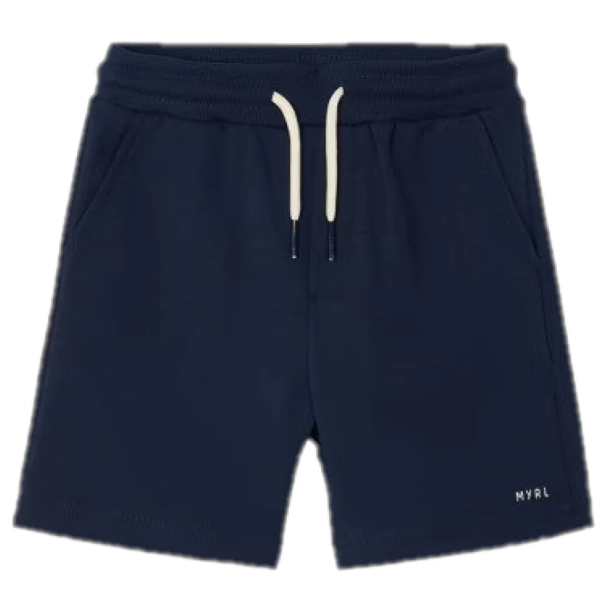 Bermuda MAYORAL in cotone con interno garzato, elastico e laccetto regolabile in vita, tasche laterali e taschino applicato sul retro, logo stampato applicato.