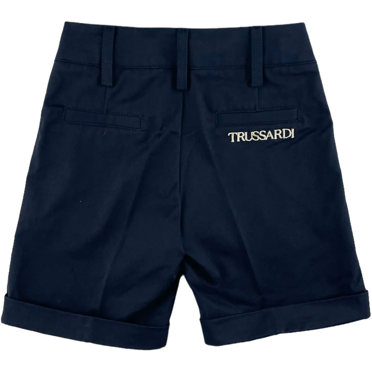 Bermuda TRUSSARDI con regoli in vita, logo trussardi ricamato a contrasto.