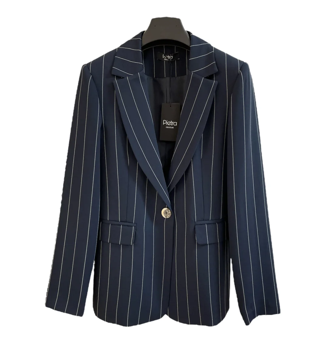 Giacca modello blazer in tessuto tecnico. Collo con revers regolari, chiusura centrale con un bottone, tasche laterali con pattina applicata. Capo foderato. Vestibilità slim regolare. Crea il tailleur con il panciotto ed il pantalone abbinati. Composizione tessuto 99% poliestere 1% elastan.