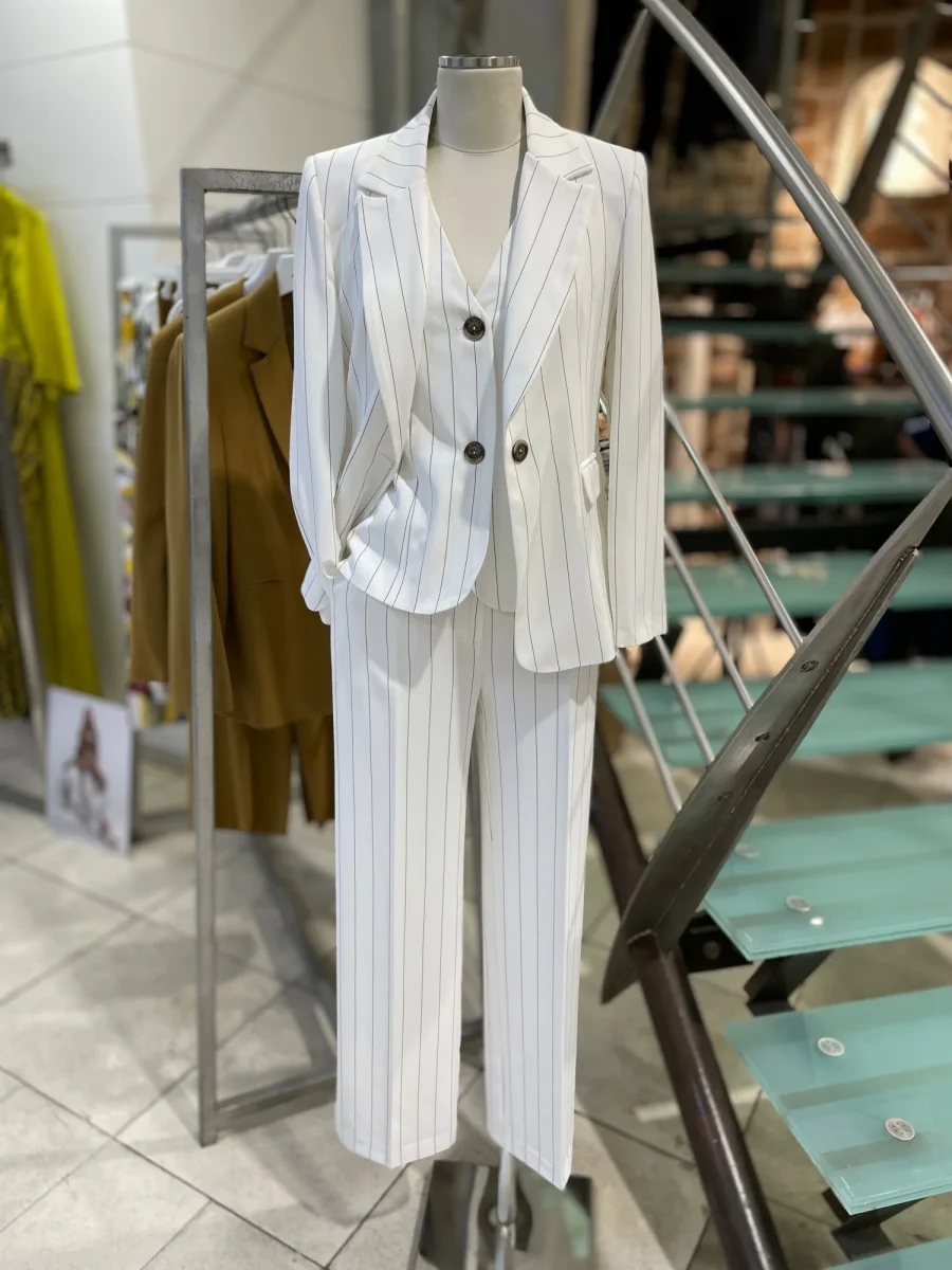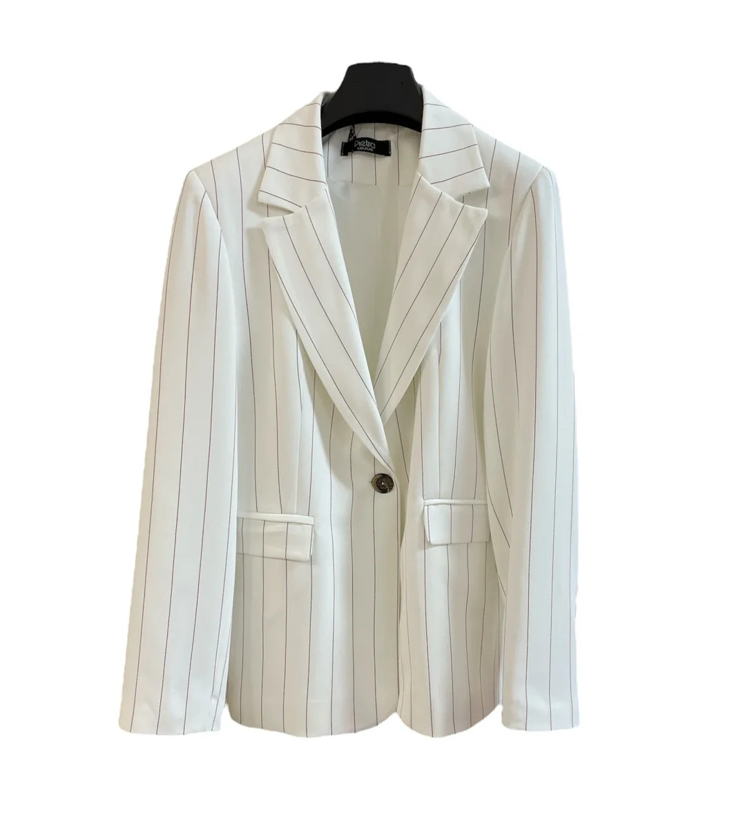 Giacca modello blazer in tessuto tecnico. Collo con revers regolari, chiusura centrale con un bottone, tasche laterali con pattina applicata. Capo foderato. Vestibilità slim regolare. Crea il tailleur con il panciotto ed il pantalone abbinati. Composizione tessuto 99% poliestere 1% elastan.