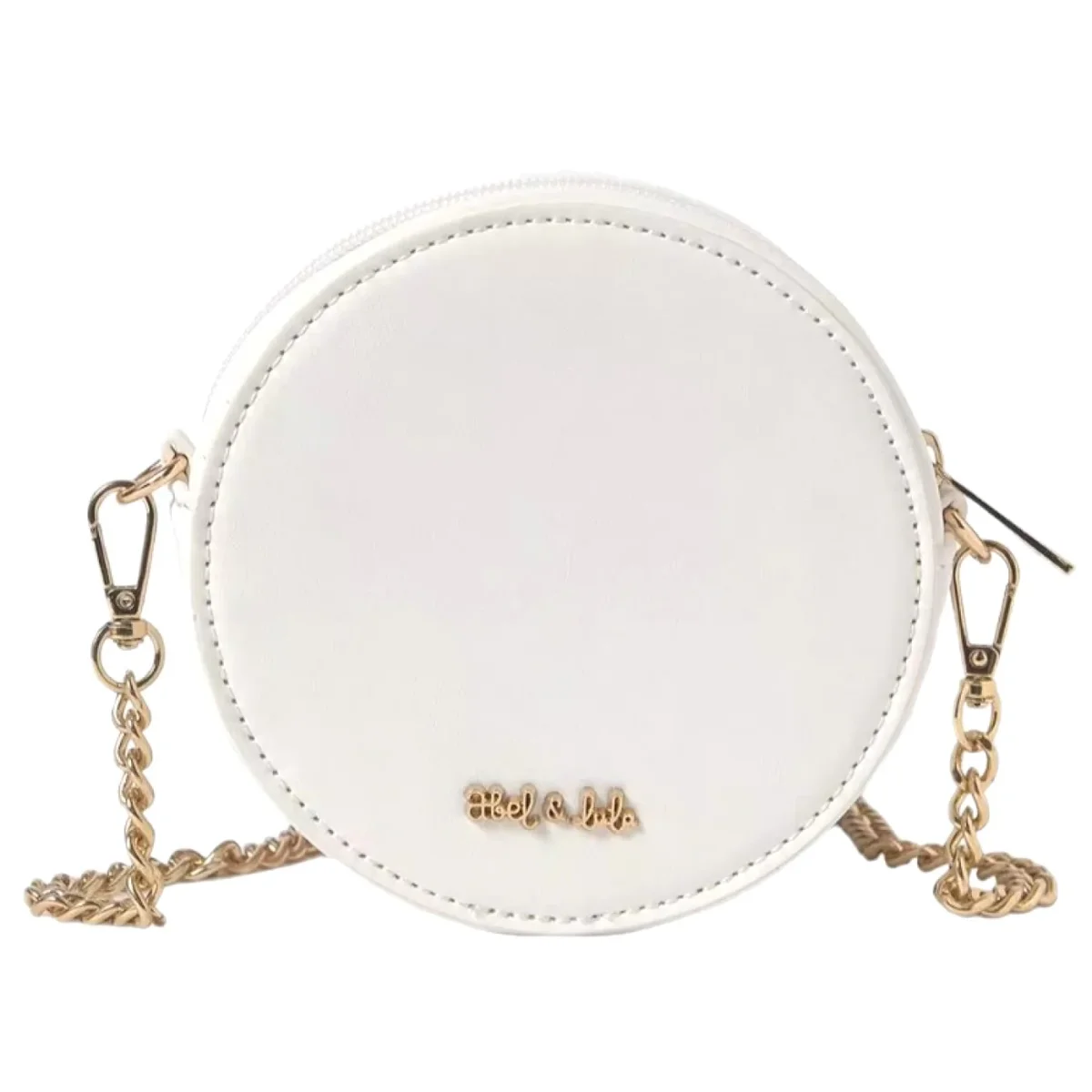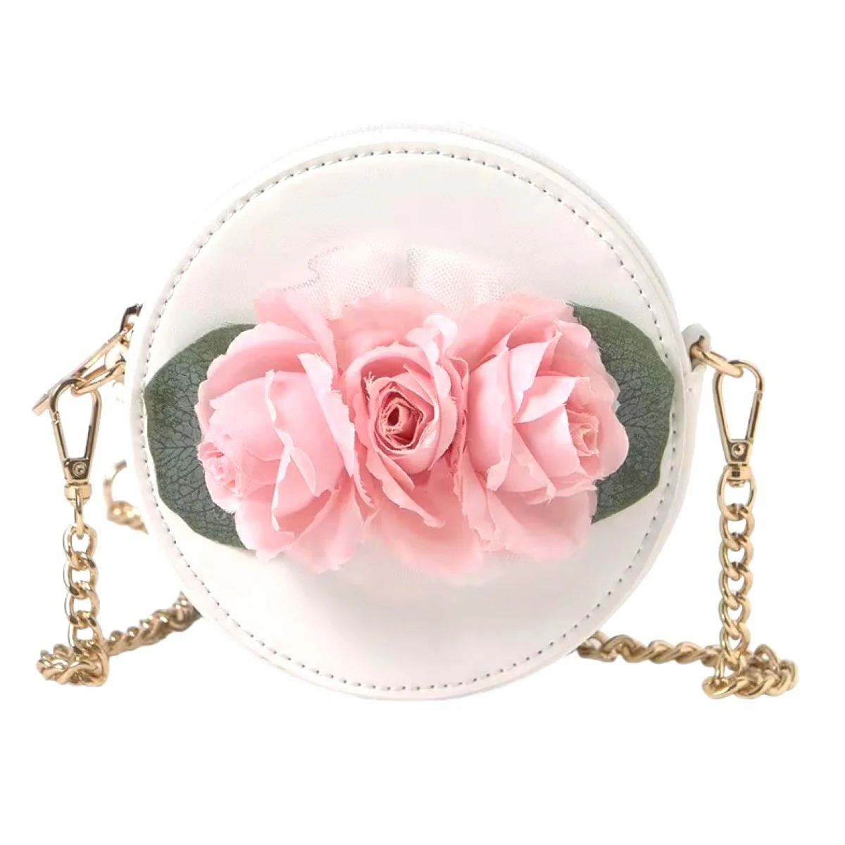 Borsa ABEL & LULA in ecopelle con chiusura zip ,tracolla removibile ,applicazione floreale , logo a rilievo sul retro. Dimensioni : 14 x 5 cm.