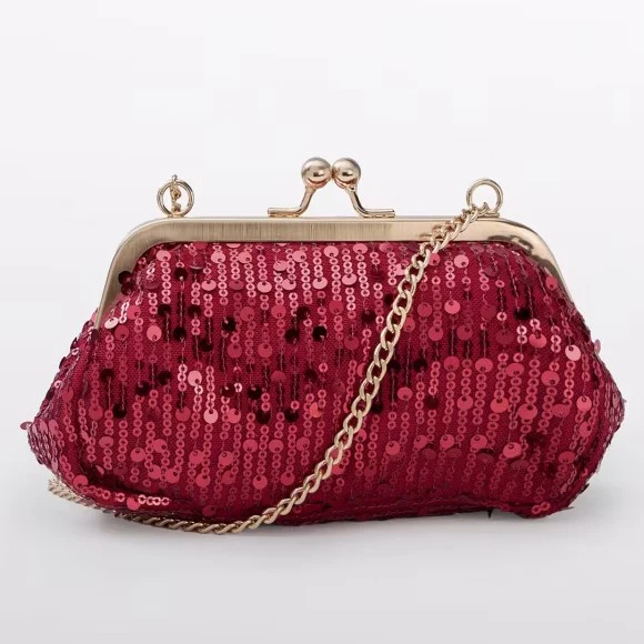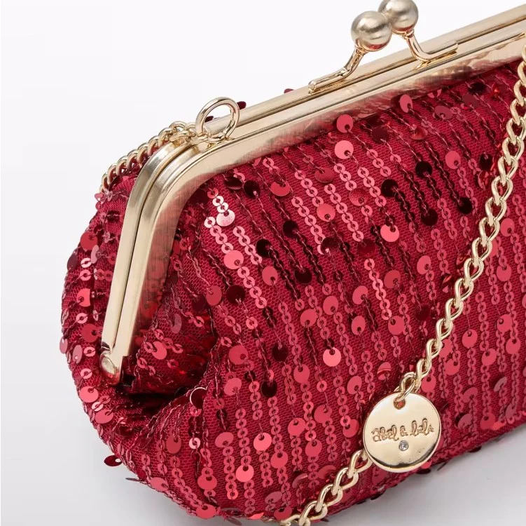 Borsa ABEL&LULA con paillettes applicate, chiusura a scatto, tracolla in metallo con ciondolo logato applicato, fodera interna.