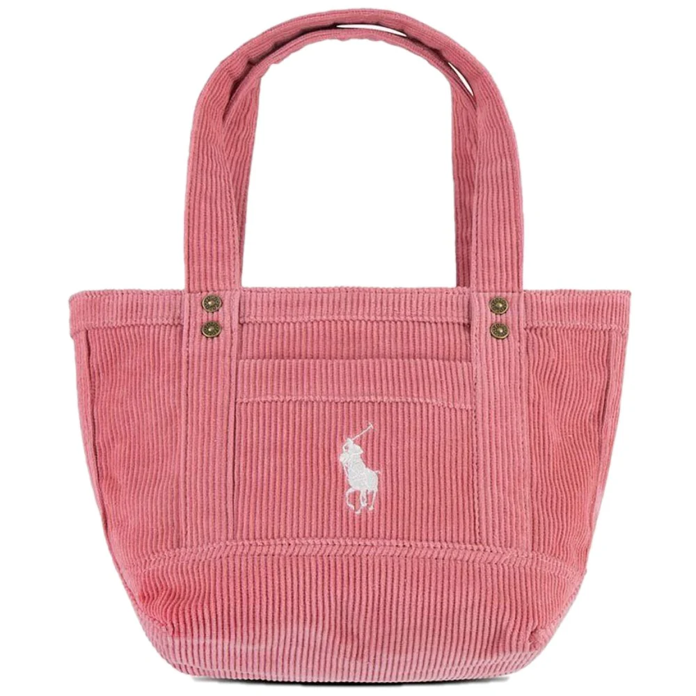 Borsa RALPH LAUREN rosa in velluto a costine taschino anteriore con logo ricamato tasca interna chiusura zip logata