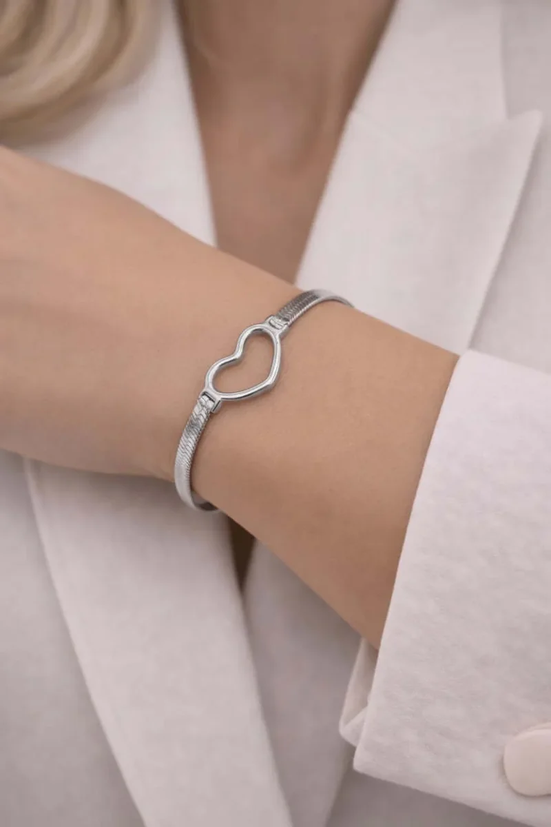 Bracciale argento cuore Romina in acciaio inossidabile , regolabile. Non perde colore.