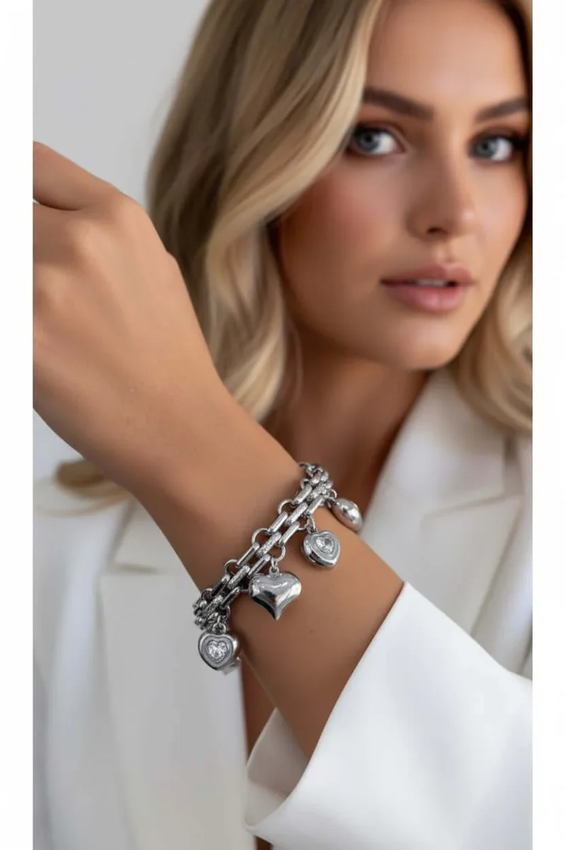 Bracciale argento Mara in acciaio inossidabile , con strass , regolabile , non perde colore , waterproof.
