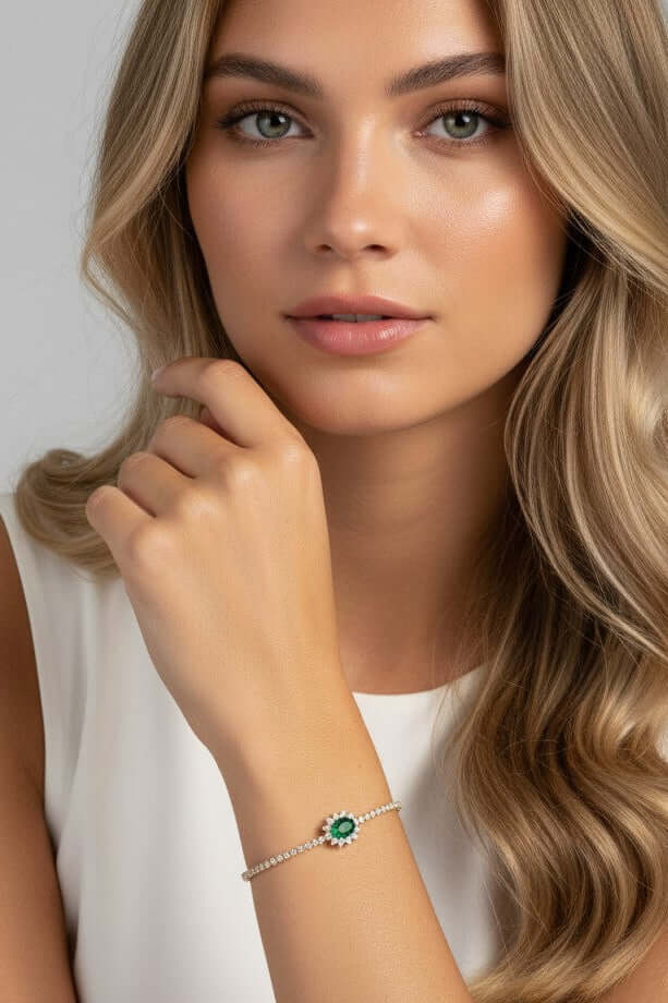 Bracciale Cecilia color oro zircone verde e trasparenti in ottone.