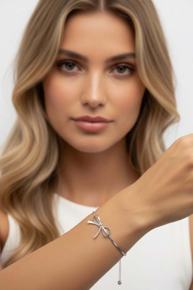 Bracciale color argento Fiocco in acciaio inossidabile , non perde colore , waterproof , nichel a norma di legge.