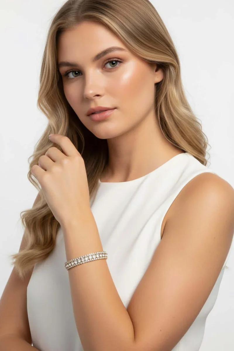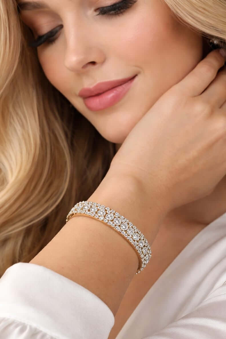 Bracciale Diva color oro e trasparente in rame e zirconi. Nichel a norma di legge.