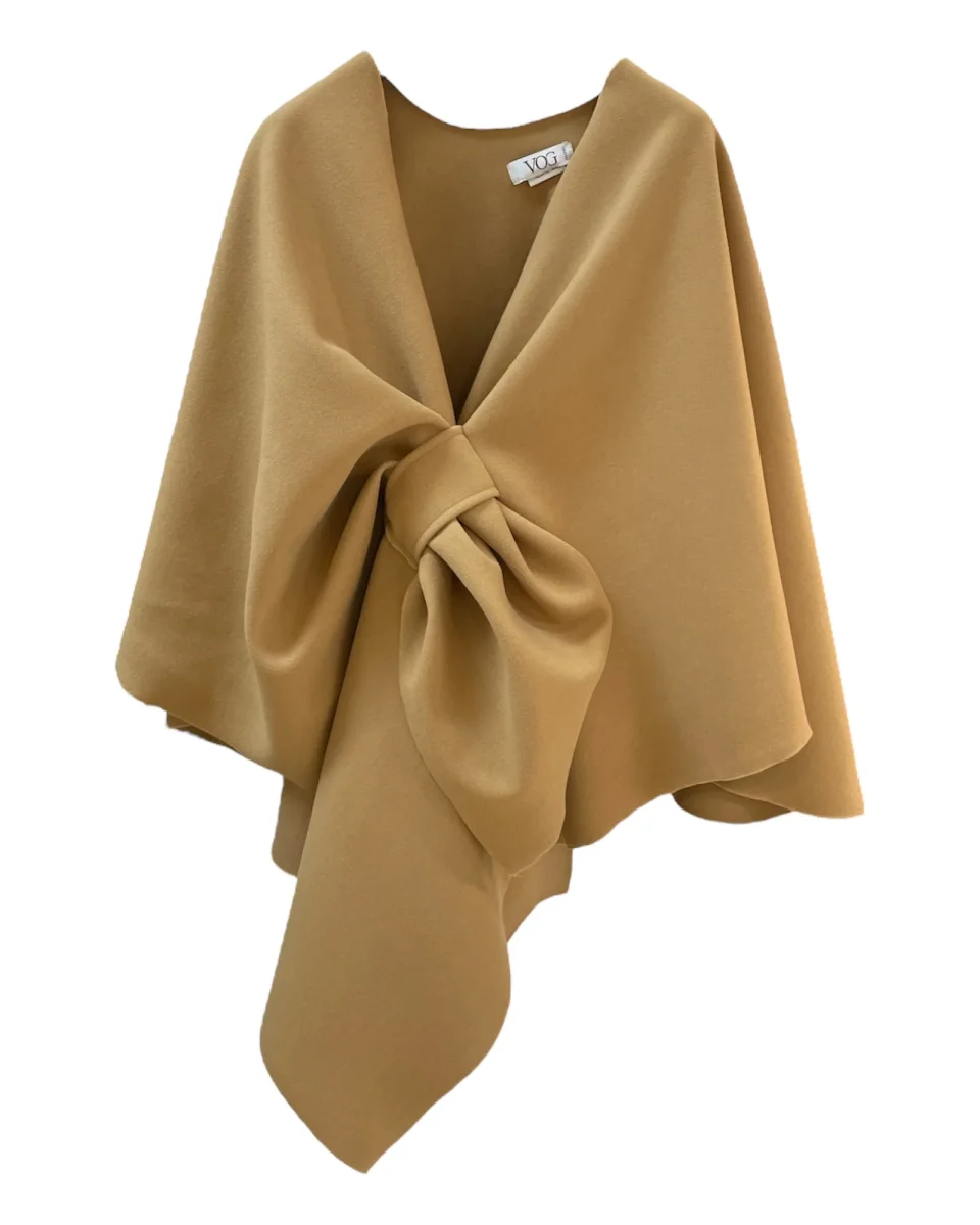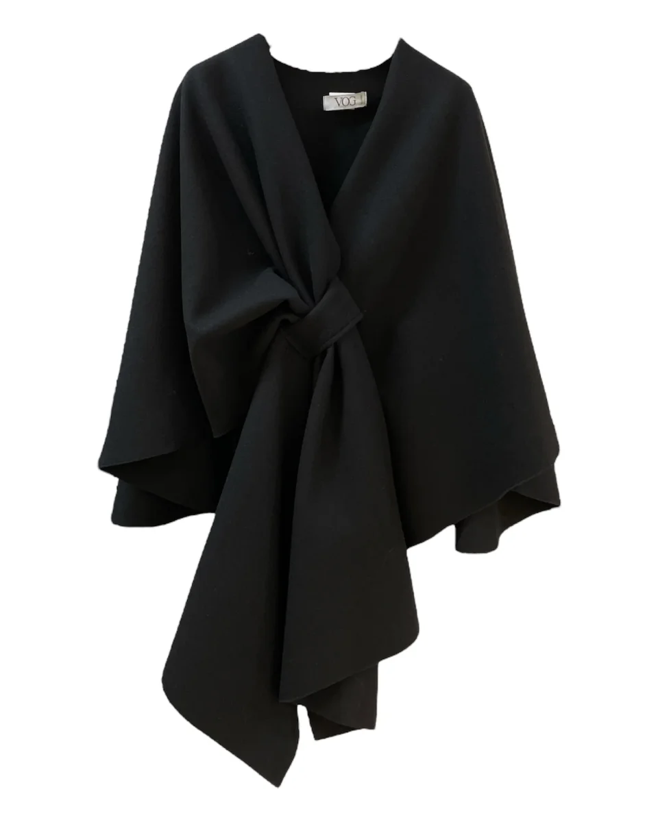 Mantella in panno con scollo incrocio e chiusura laterale con gancetto effetto nodo. Versatile e pratica, è perfetta per essere indossata da sola o da utilizzare su piumini e cappotti per dare calore ed un tocco personale si tuoi look. Taglia unica.