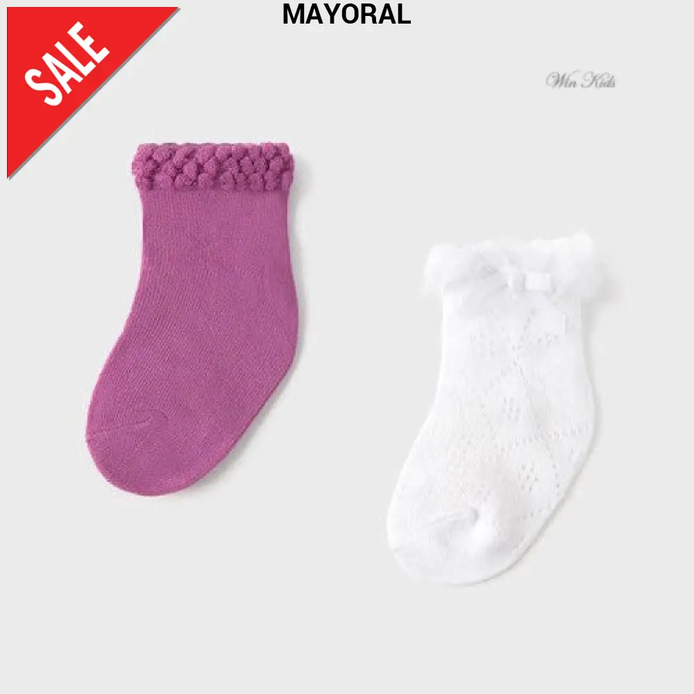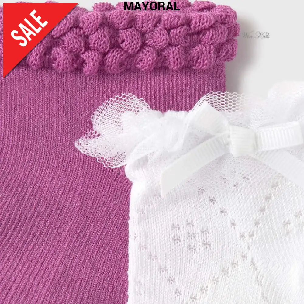 Set 2 calzini MAYORAL , composto da un paio di calzini color cielo glitter e un paio di calzini bianco con tulle e fiocco applicato.