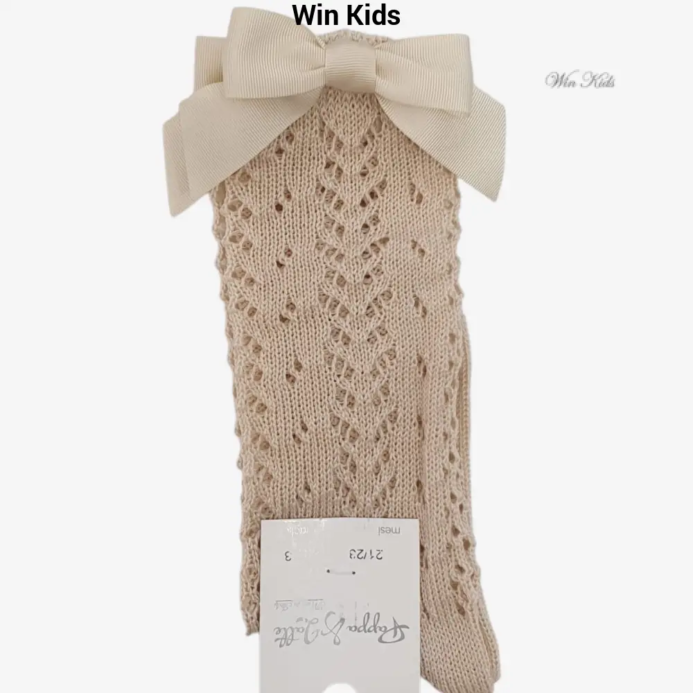 Calzini Pappa e Latte modello alto traforato con fiocco beige