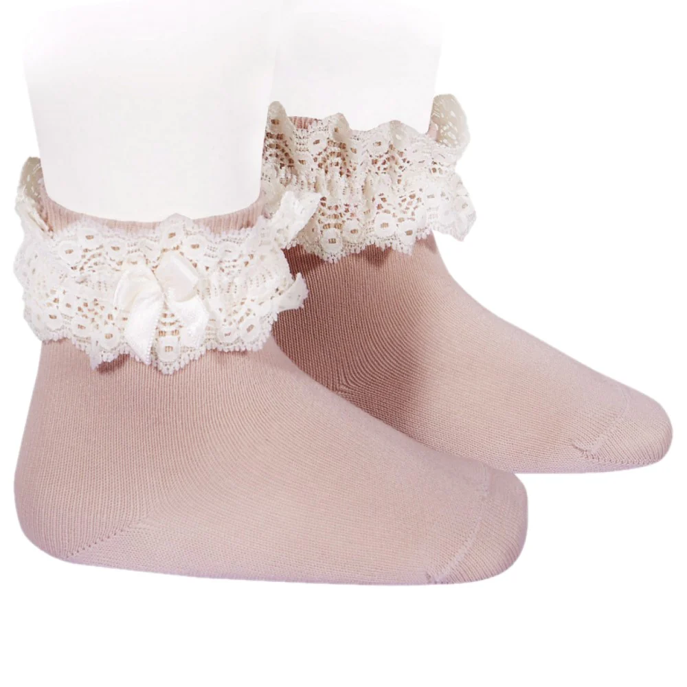 Calzino CONDOR in cotone con bordo in merletto fiocco in raso applicato.codice: 2484 col. 526