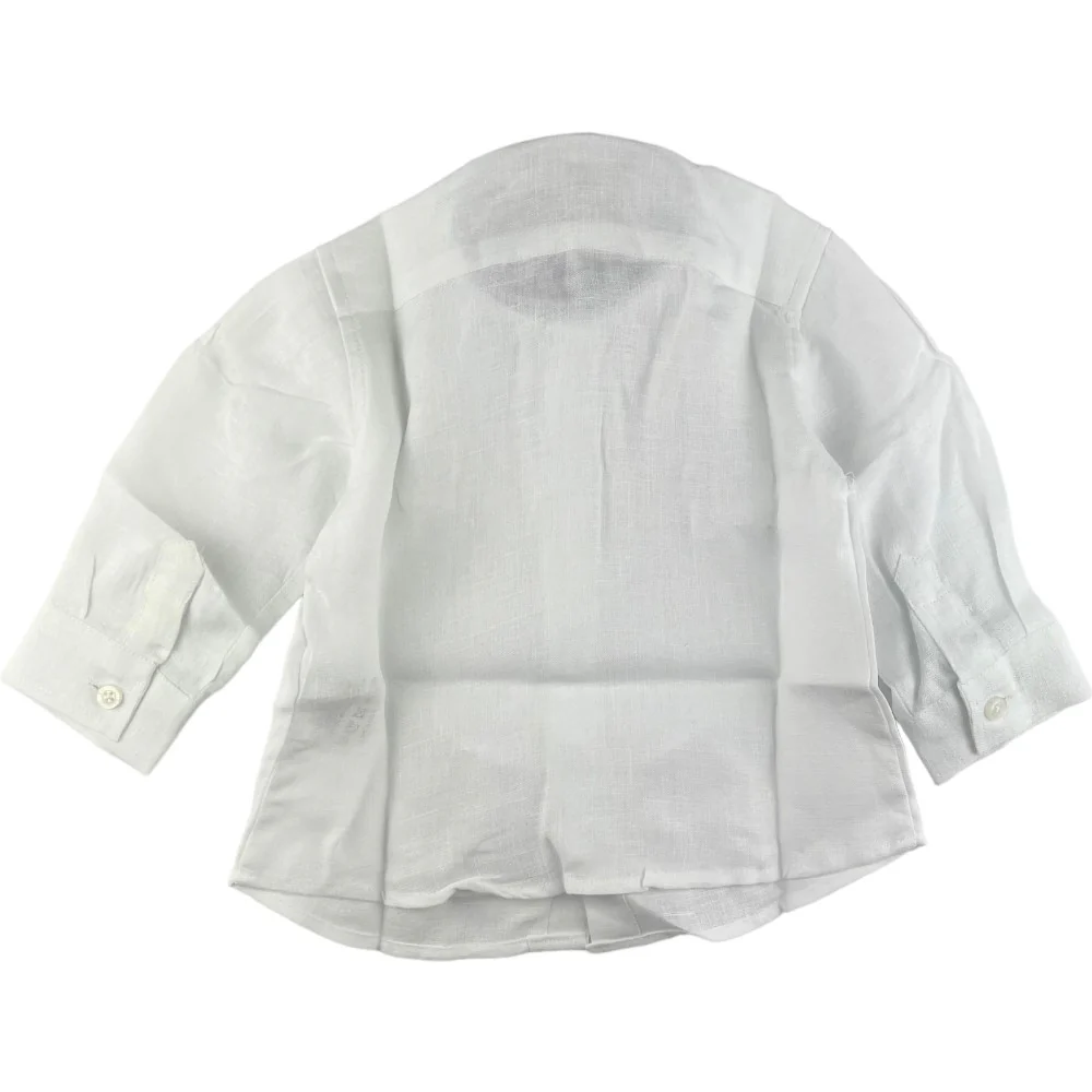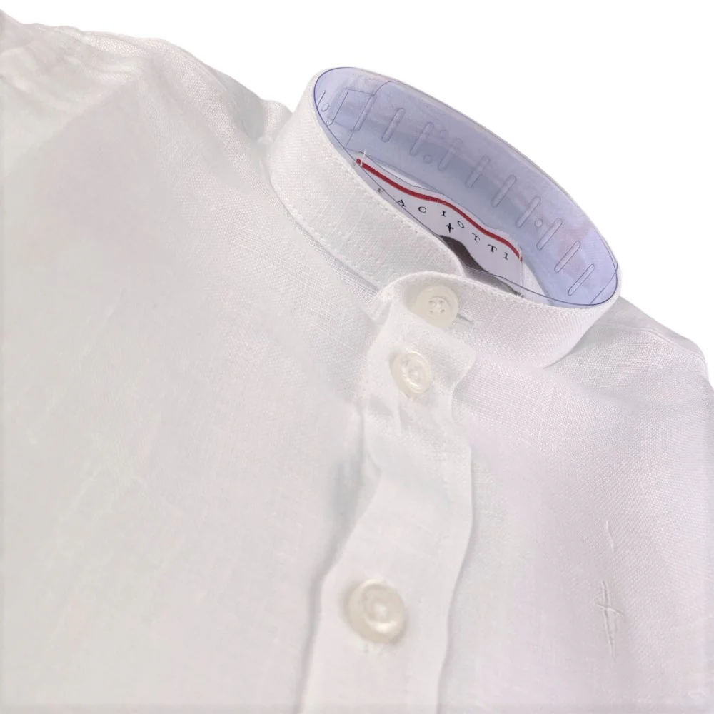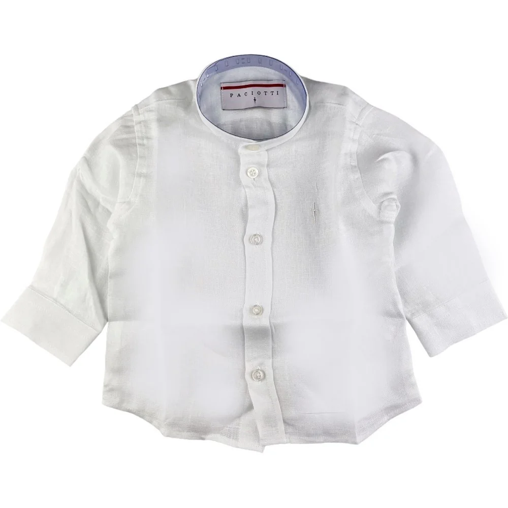 Camicia CESARE PACIOTTI in lino con logo ricamato a contrasto modello con colletto a pistagnina.
